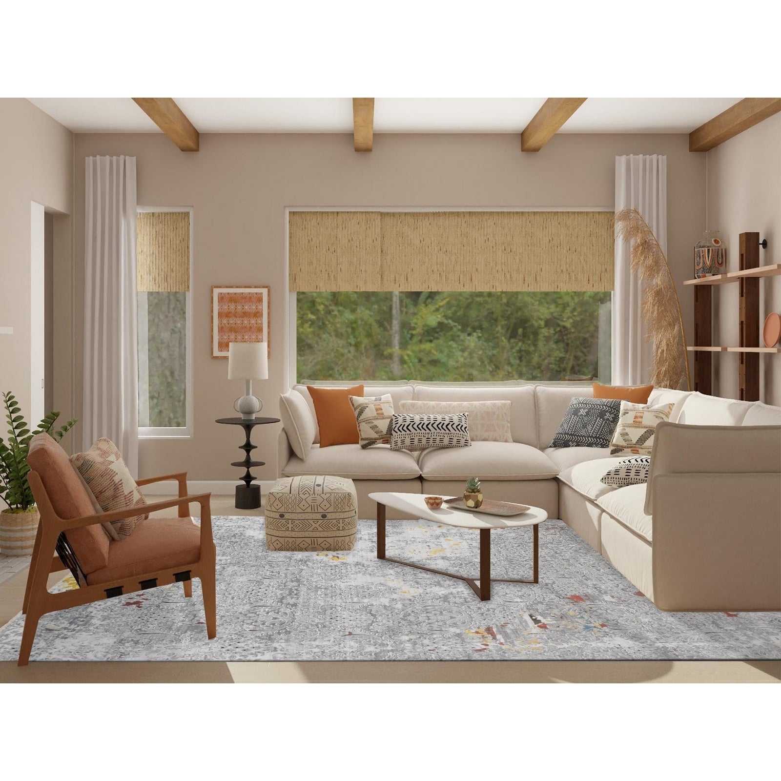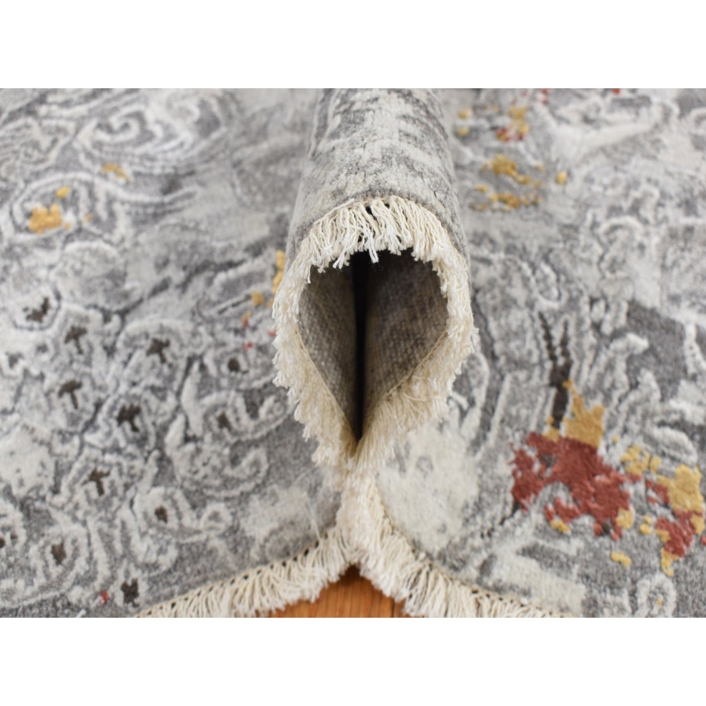 8'9"X11'10" Gray Hand Knotted Modern Broken Design Wool And Silk Rug