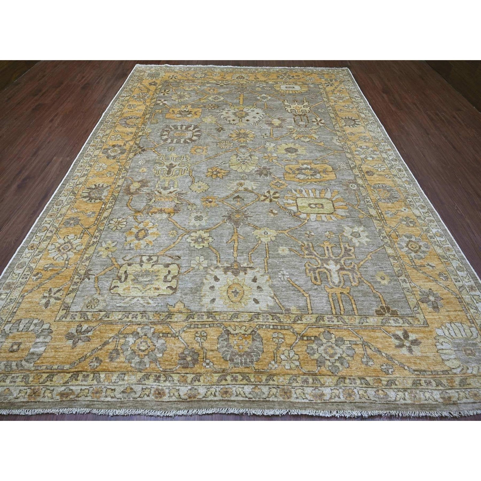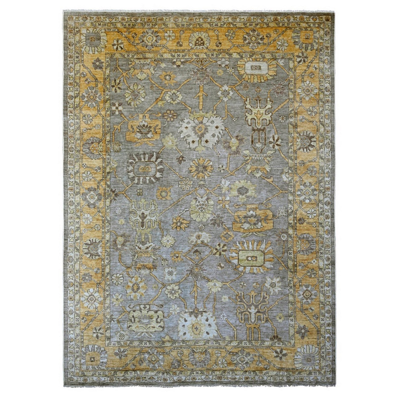 8'9"X12' Gray Pure Wool Rug Hand Knotted Afghan Angora Oushak Leaf Pattern