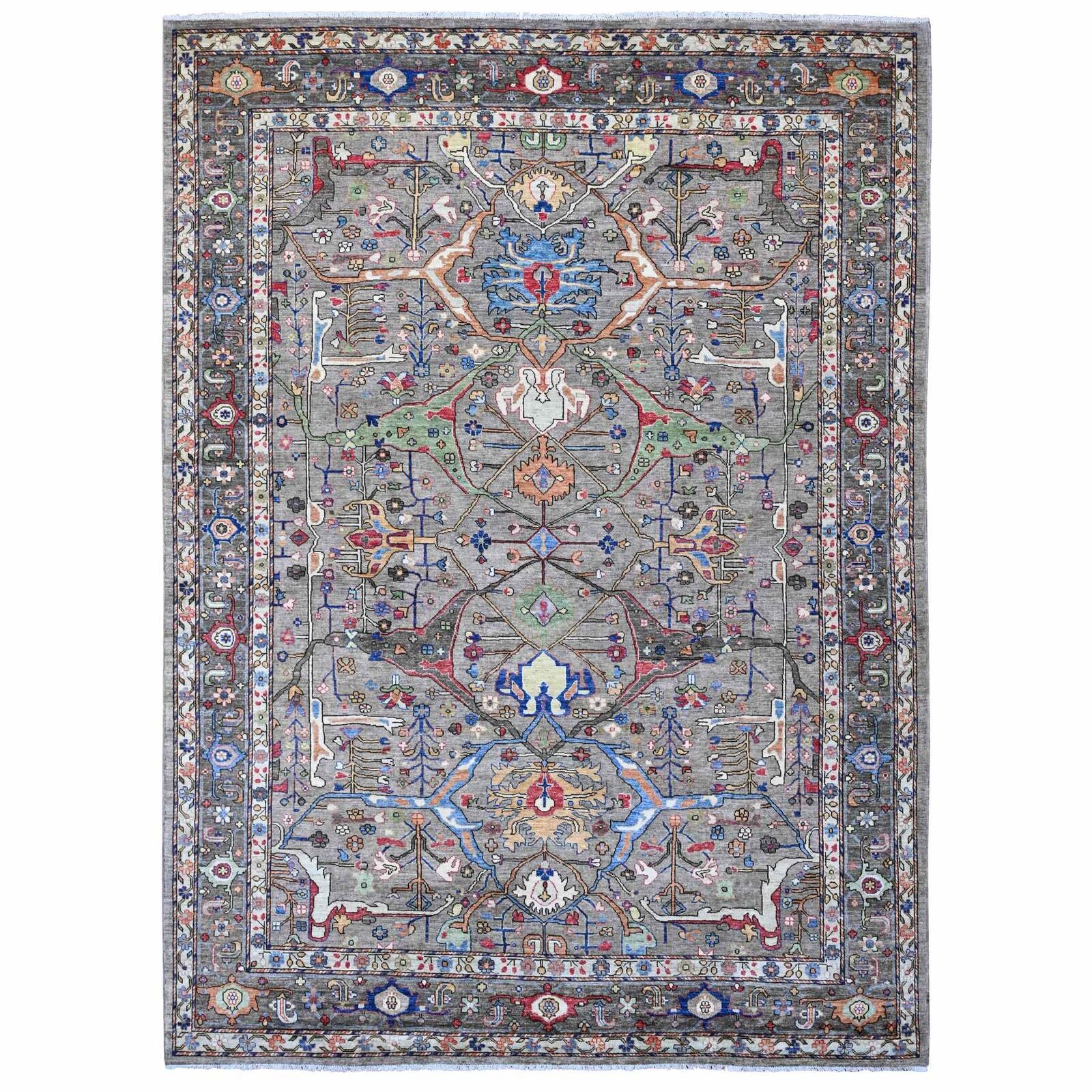 8'9"X12' Nevada Gray Peshawar Bijar Garus Design Hand Knotted Wool Rug