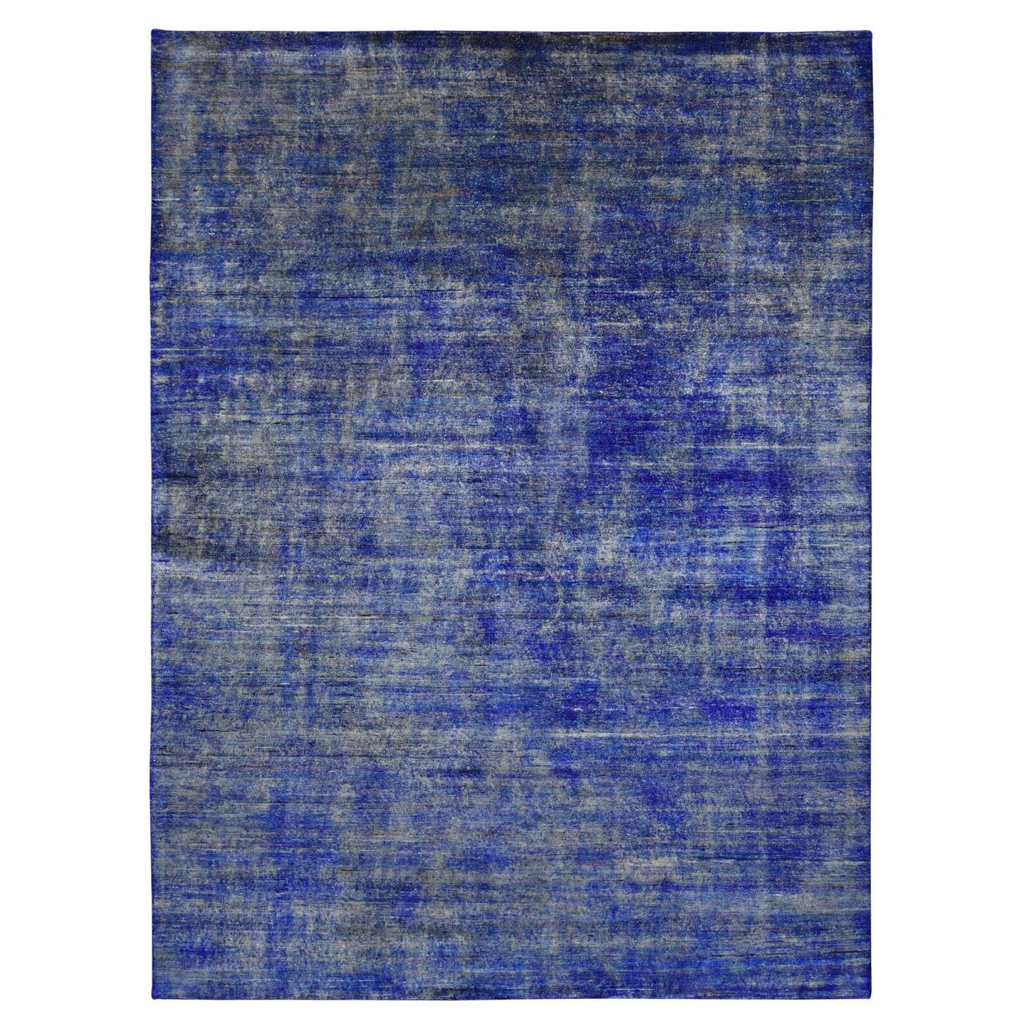 8'9"X12' Purple With Gold Modern Design Sari Silk Hand Knotted Rug