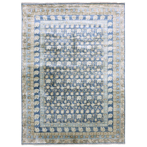 8'9"X12' Yale Blue Hand Knotted 100% Pure Real Silk Khotan Design Rug