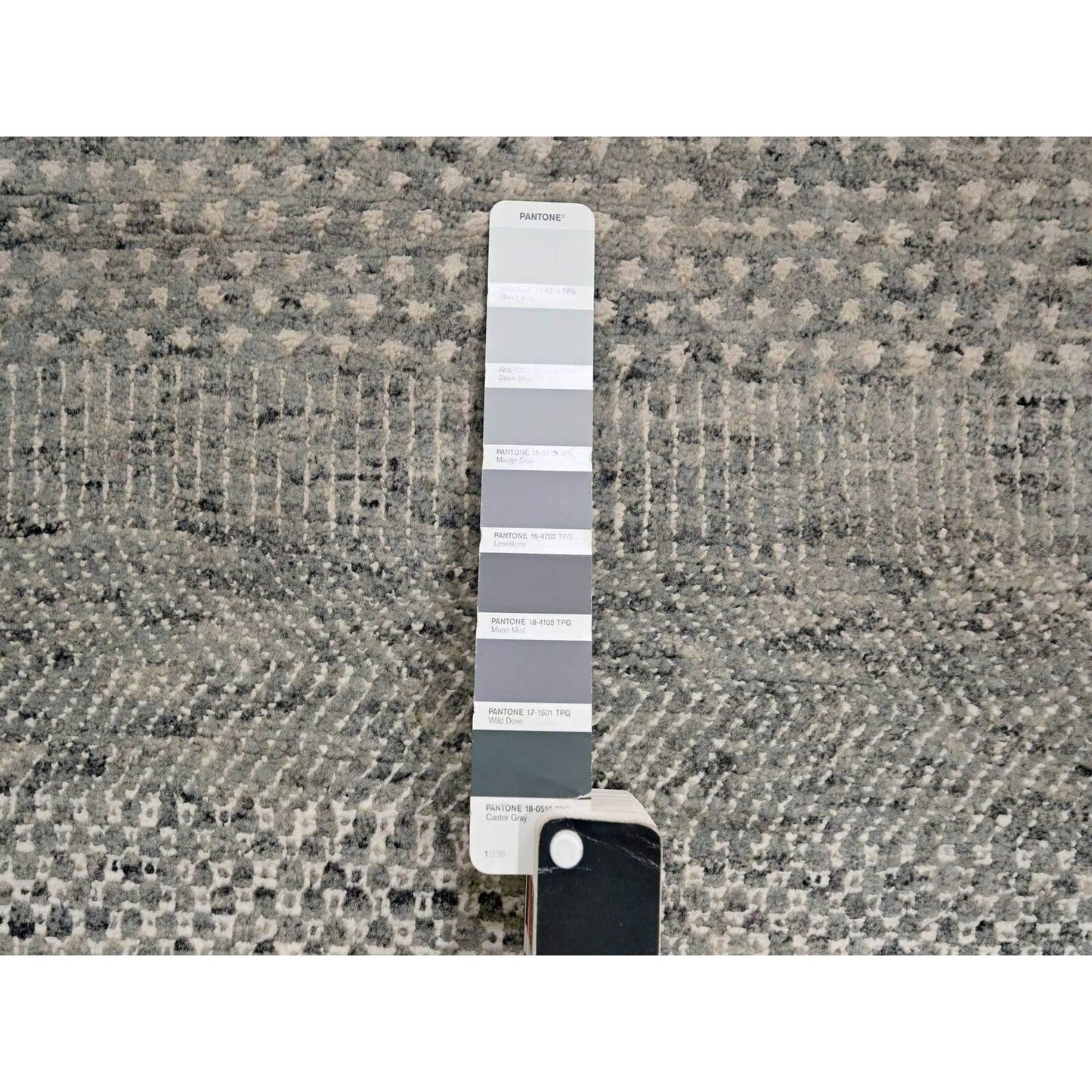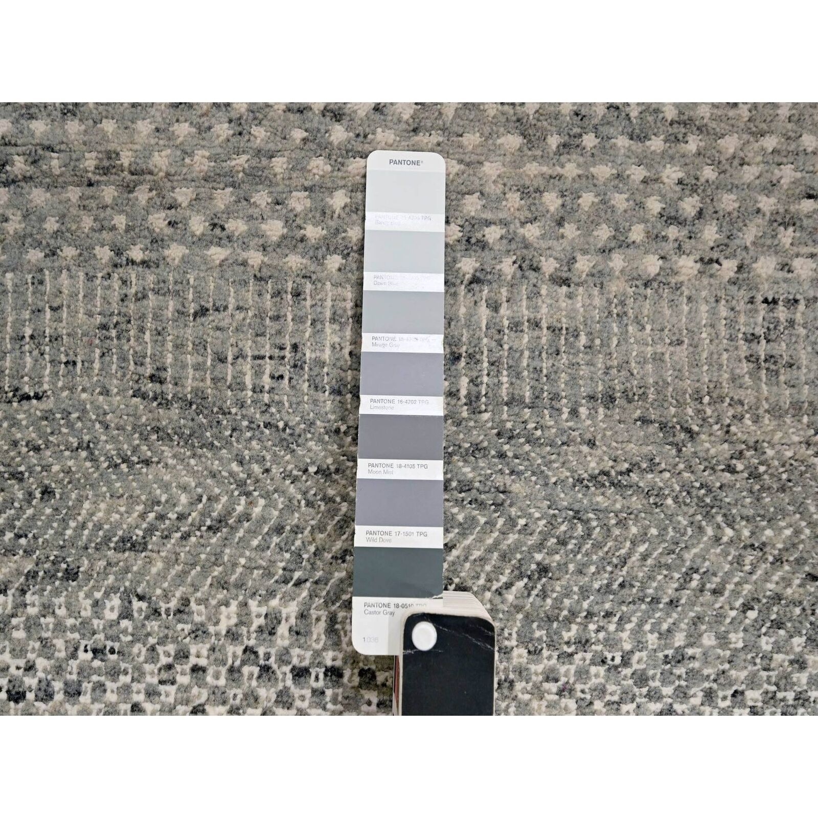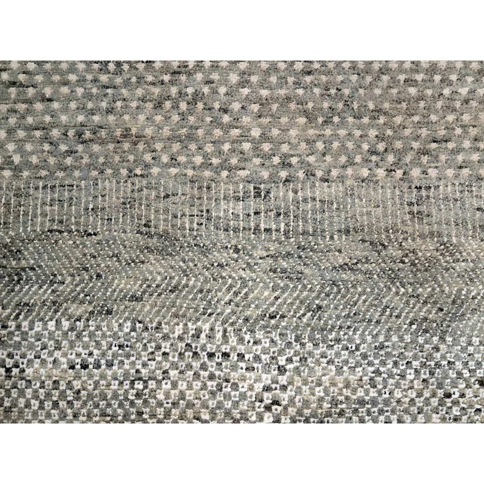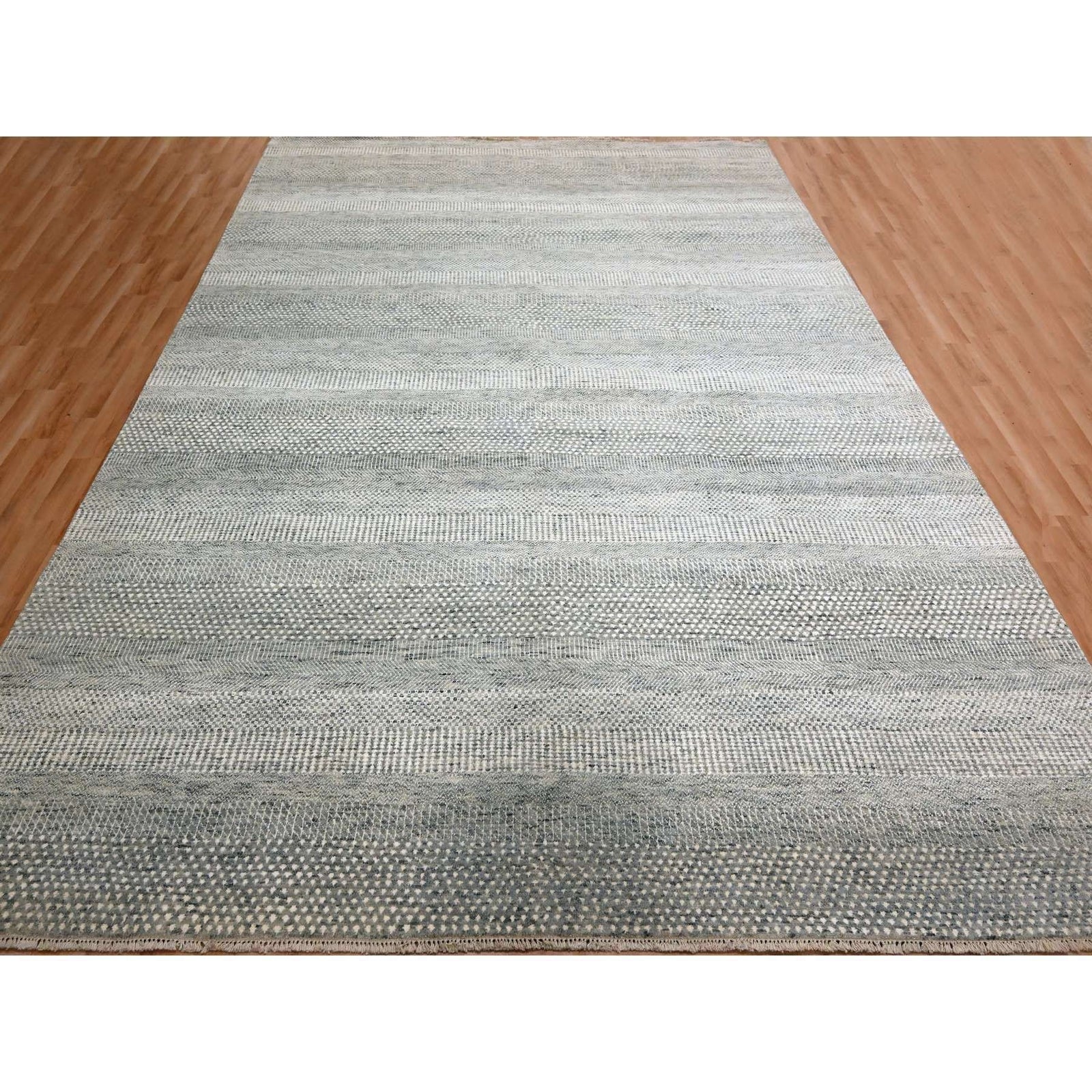 8'9"X12'3" Gray Grass Design Hand Knotted Wool And Silk Tone On Tone Rug
