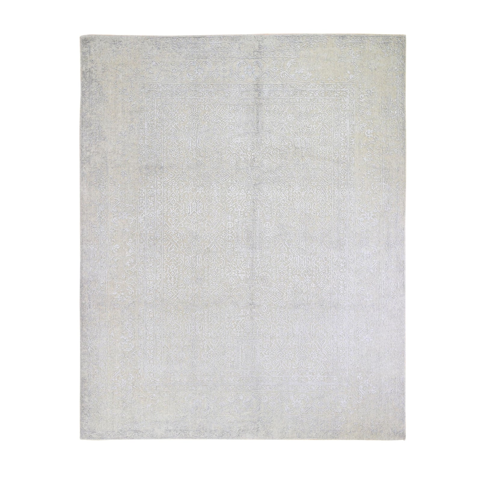 8'X10' Beige Wool And Silk Hand Loomed Fine Jacquard Rug
