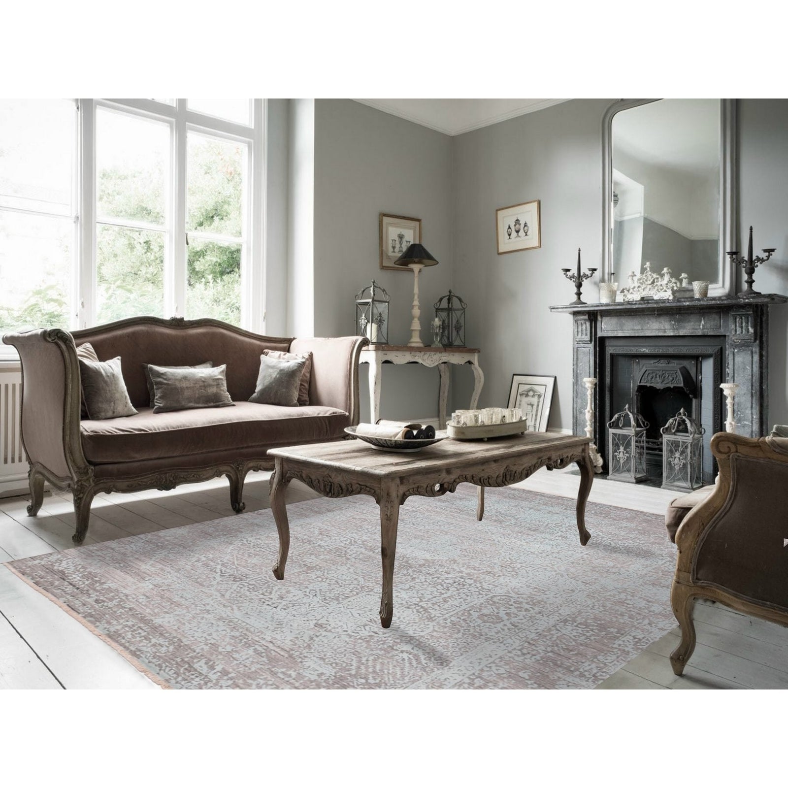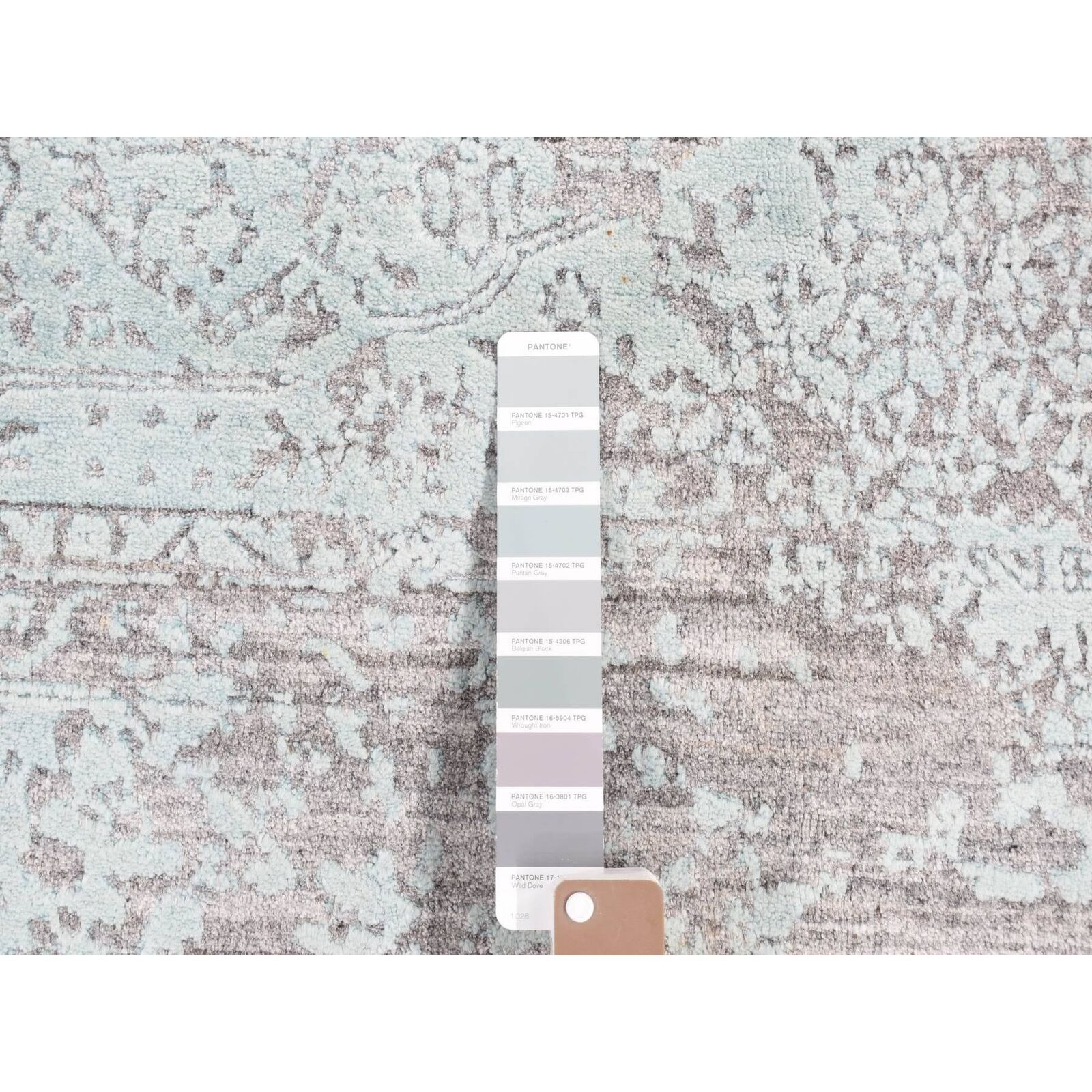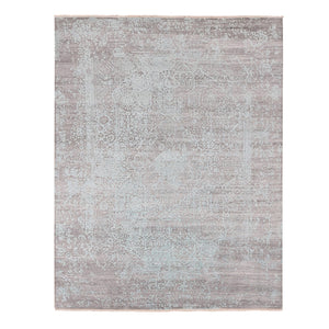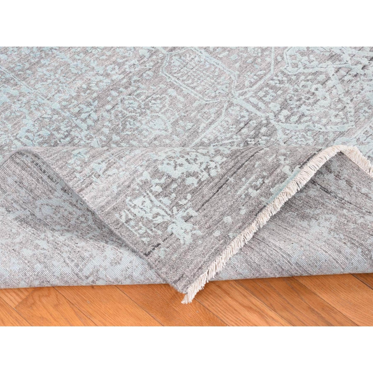 8'X10' Green Wool And Silk Hand Knotted Broken Zoroastrian Design Rug