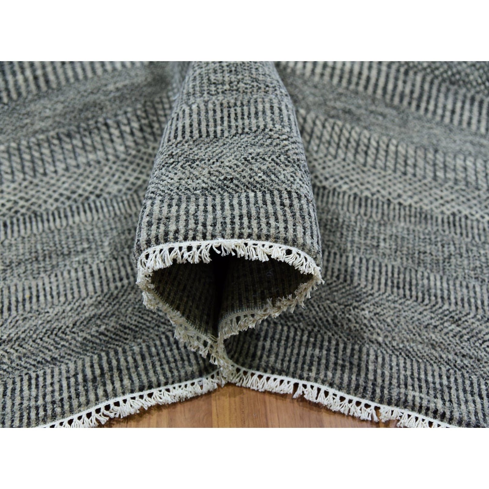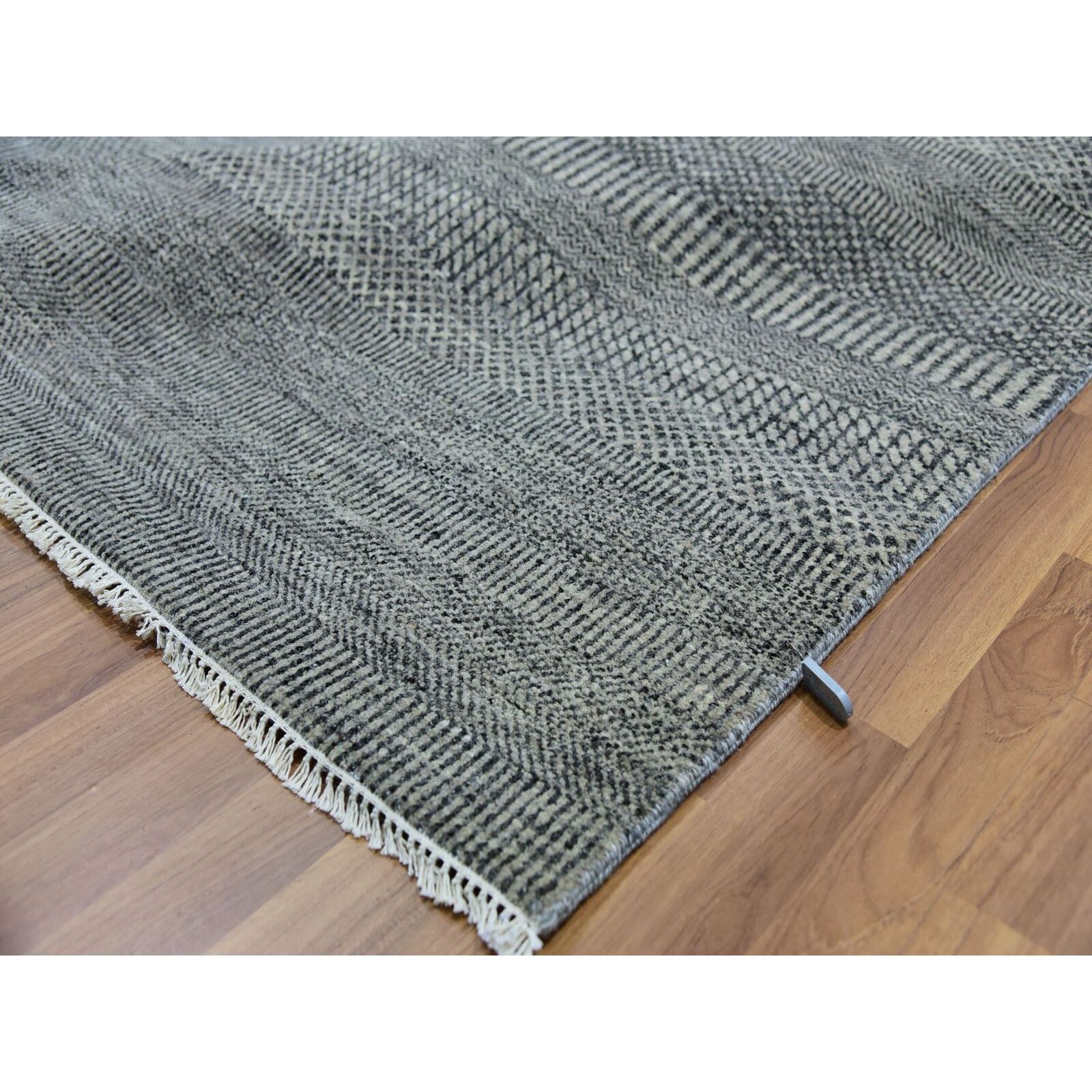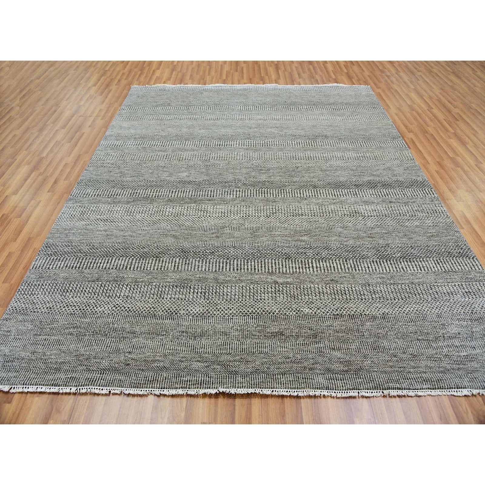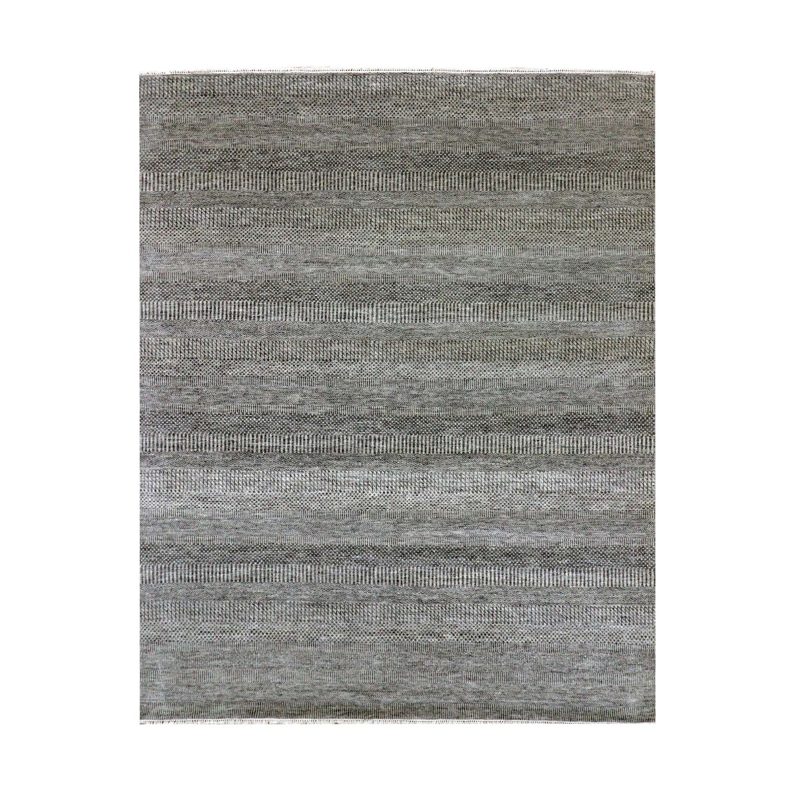 8'X10' Power Gray Hand Knotted Modern Grass Design Organic Wool Rug