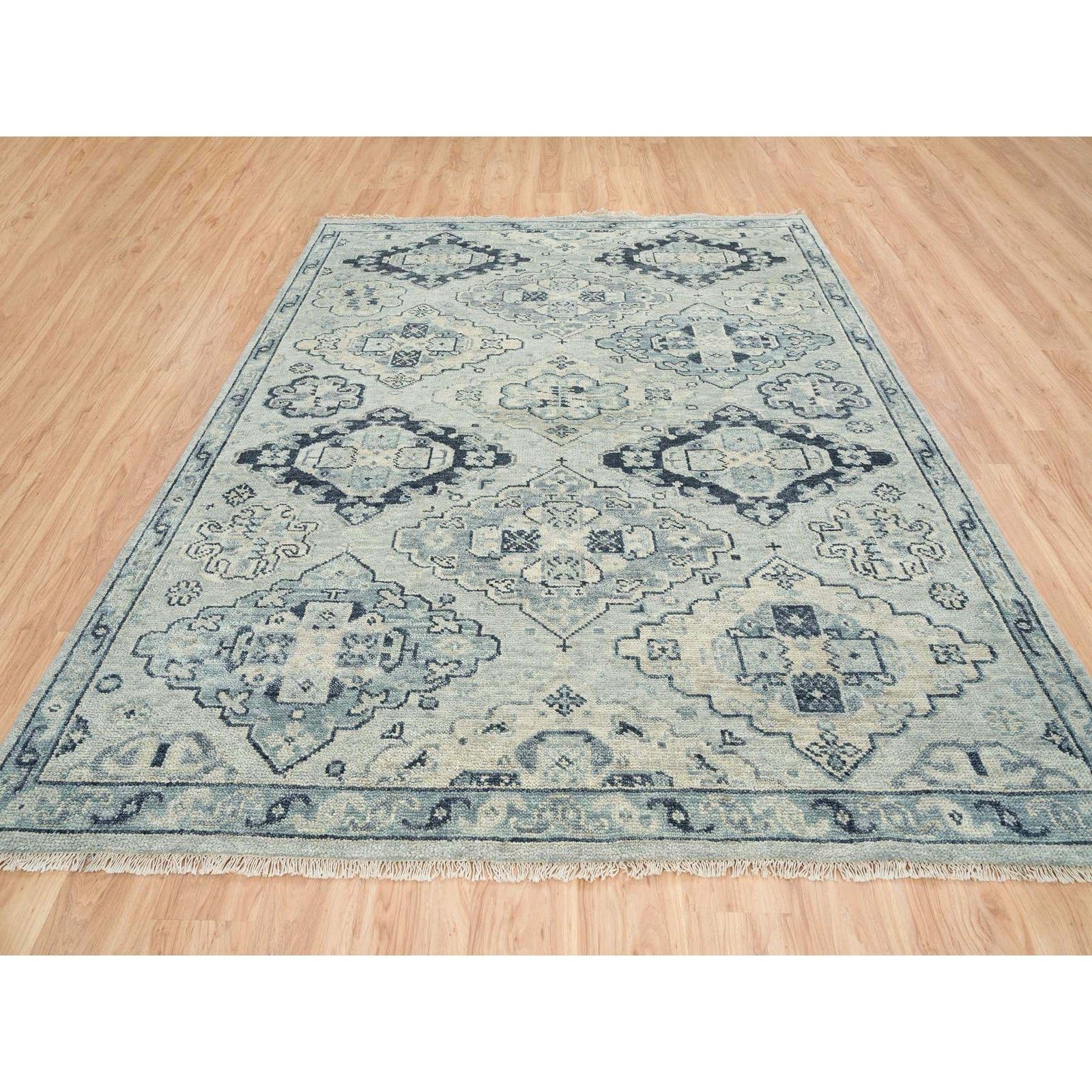 8'X10' Silver Gray Hand Knotted Anatolian Design Pure Wool Rug