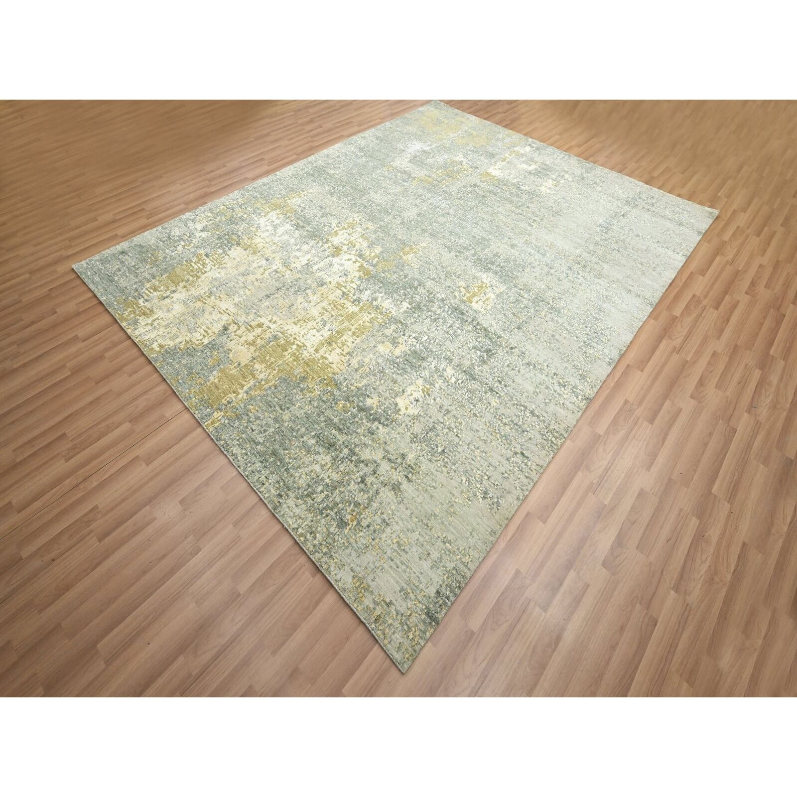 8'X10'1" Sage Green Abstract With Galaxy Design Wool Hand Knotted Rug