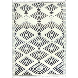 8'X10'10" Ivory Moroccan Berber Wool Hand Knotted Rug