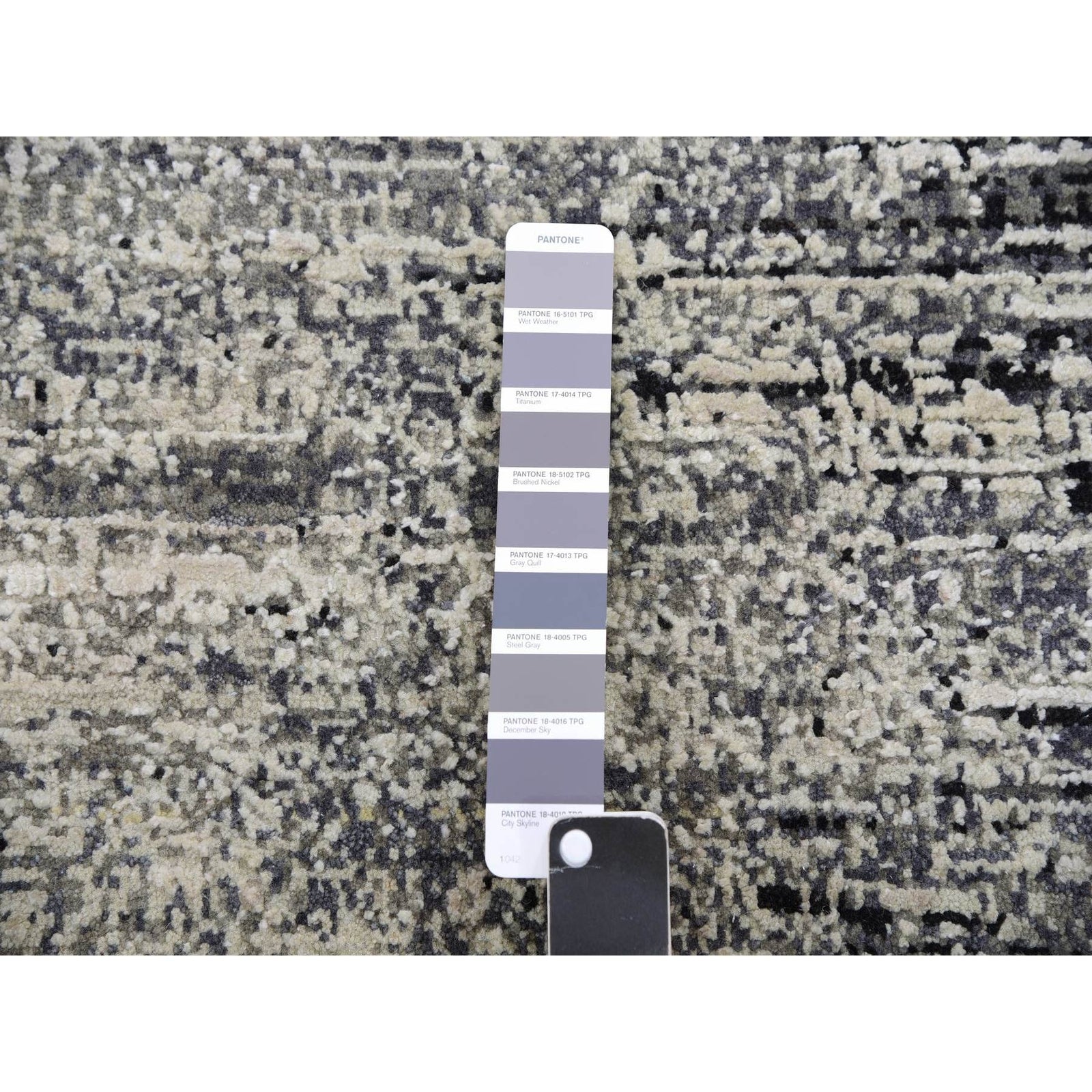 8'X10'3" Domino Black Modern Wool And Silk Striae Design Hand Knotted Rug