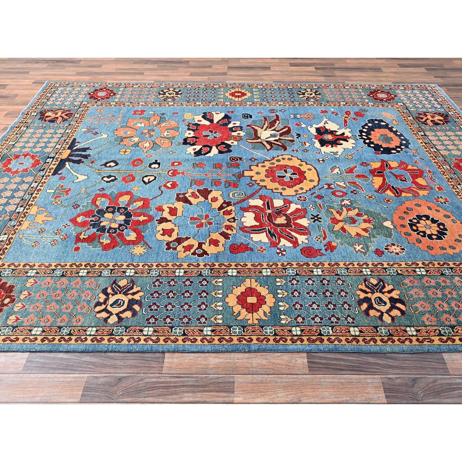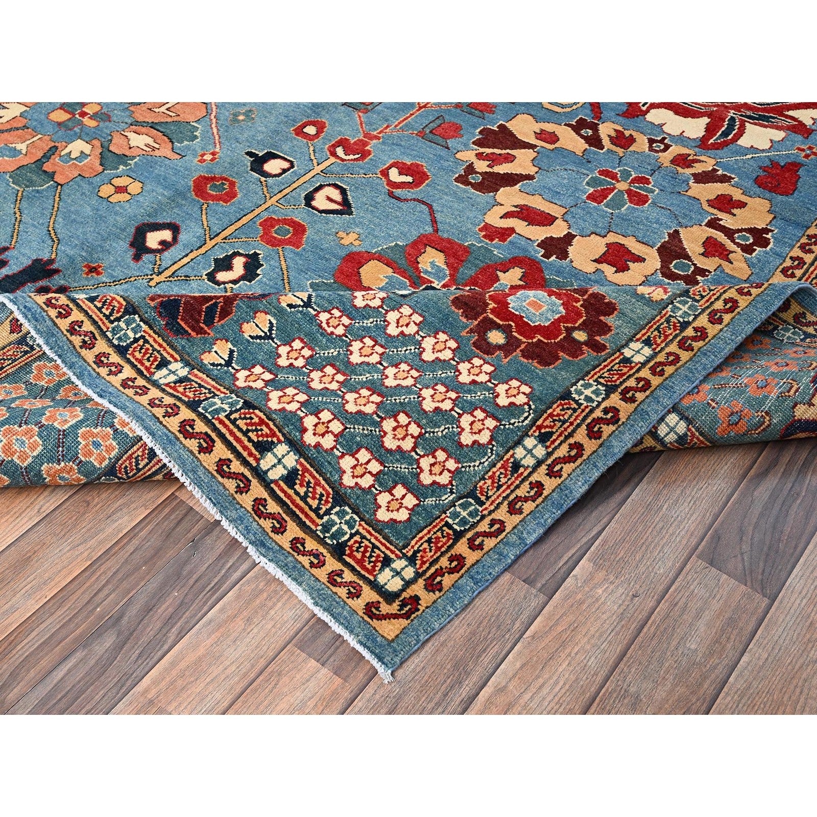 8'X10'4" Blue Wool Rug Afghan Peshawar Heris All Over Design Hand Knotted