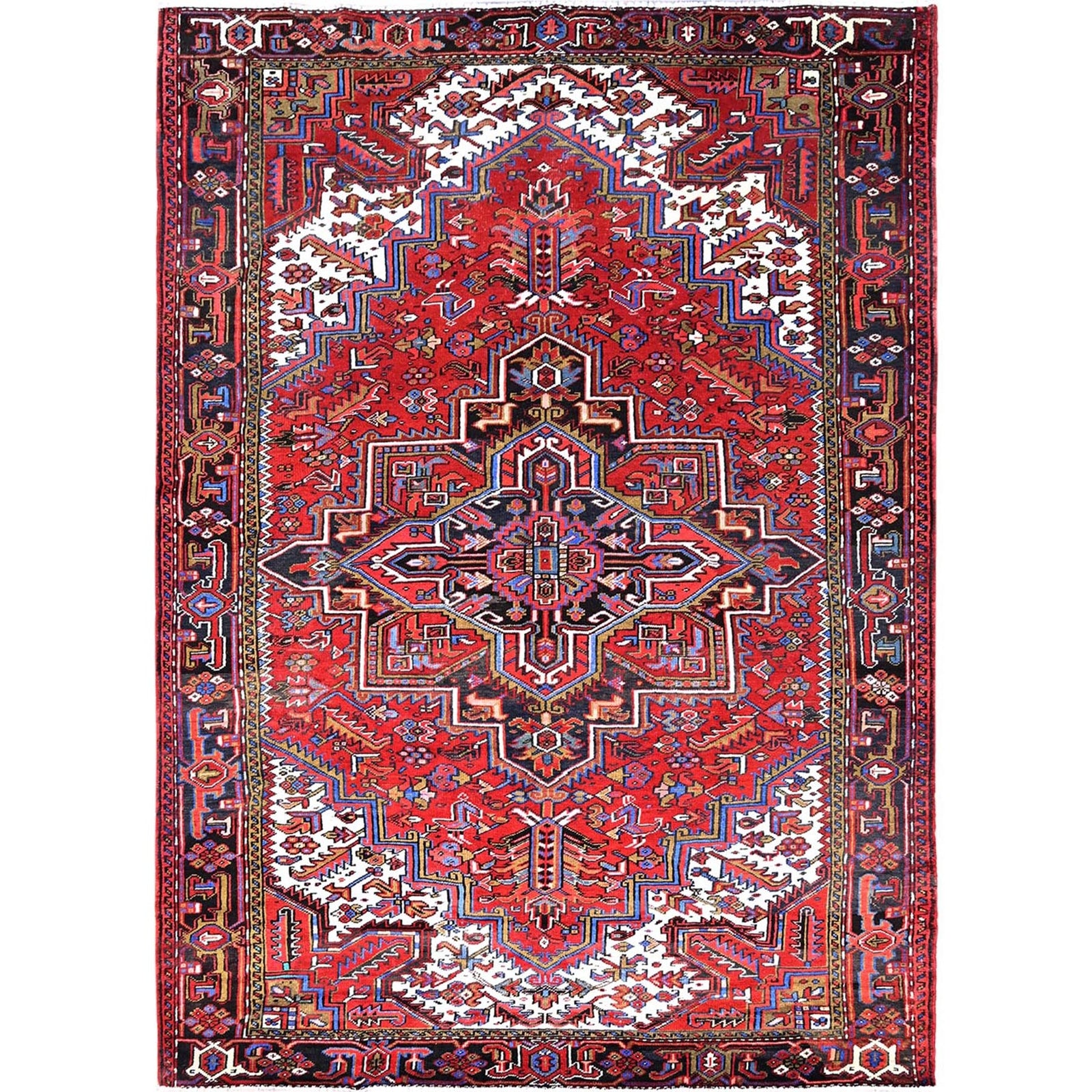 8'X11' Sox Red Antique Zoroastrian Heris Wool Hand Knotted Oriental Rug
