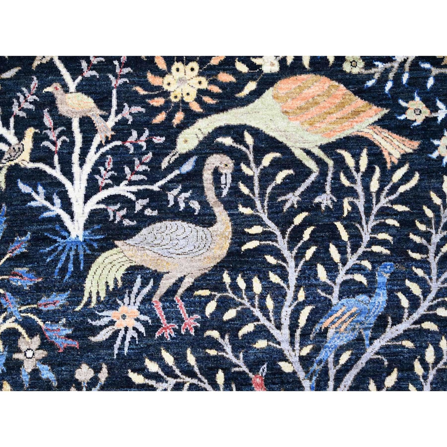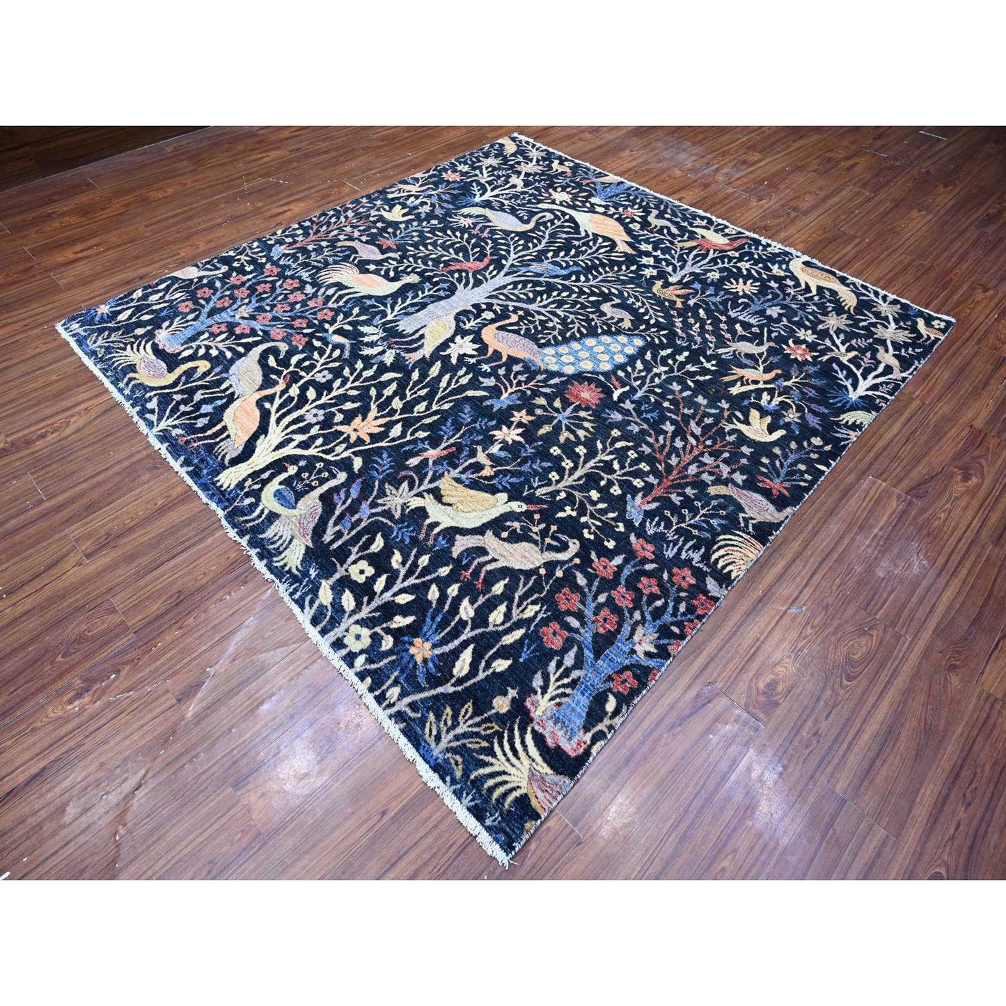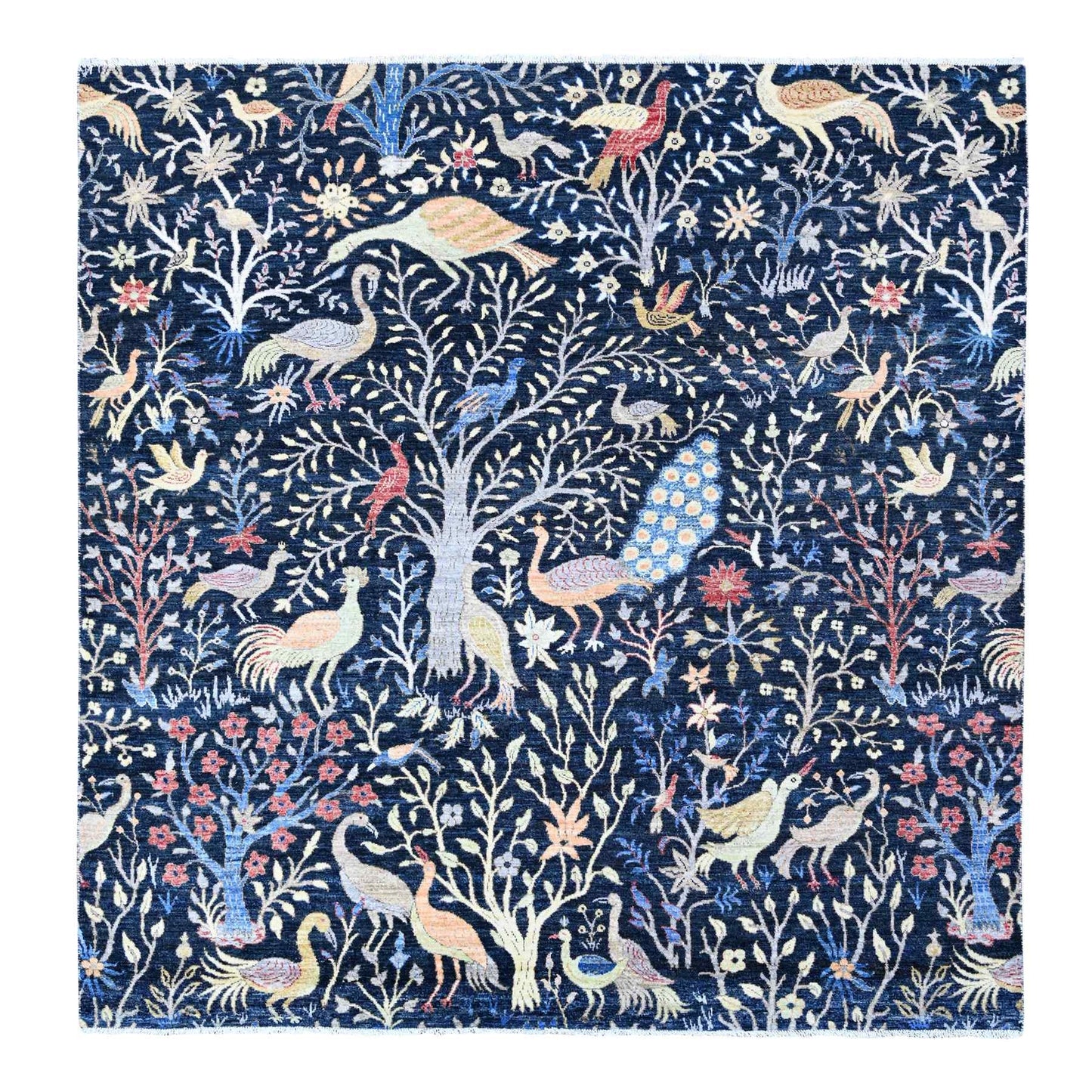 8'X8' Blue Birds Of Paradise Peshawar Hand Knotted Square Oriental Rug