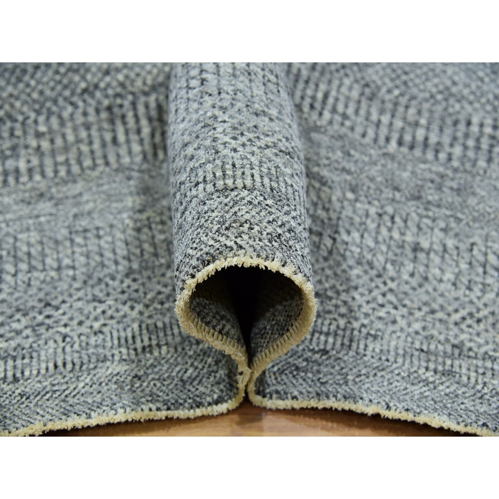 8'X8' Glacier Gray Modern Grass Hand Knotted Wool Square Oriental Rug