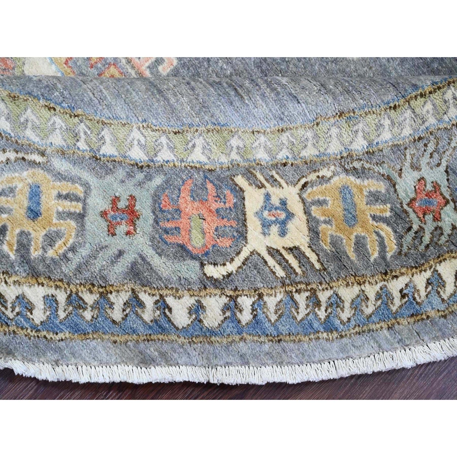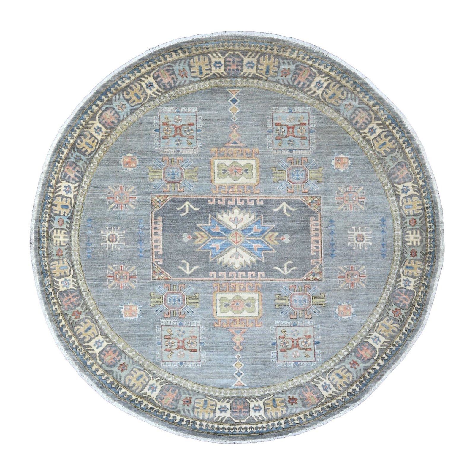 8'X8' Gray Antique Caucasian Influence Design Hand Knotted Wool Round Rug
