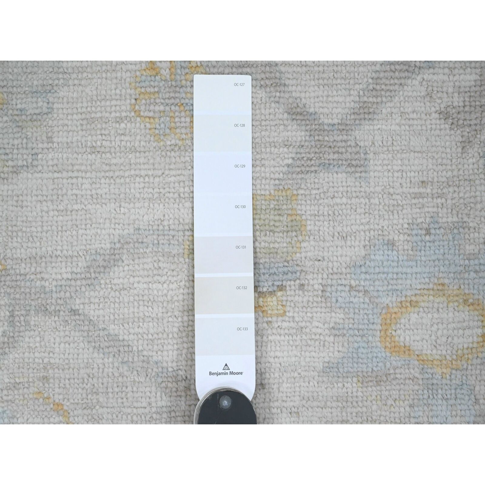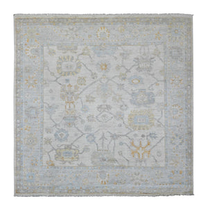 8'X8' Pearl White Hand Knotted Afghan Angora Oushak Pure Wool Square Rug