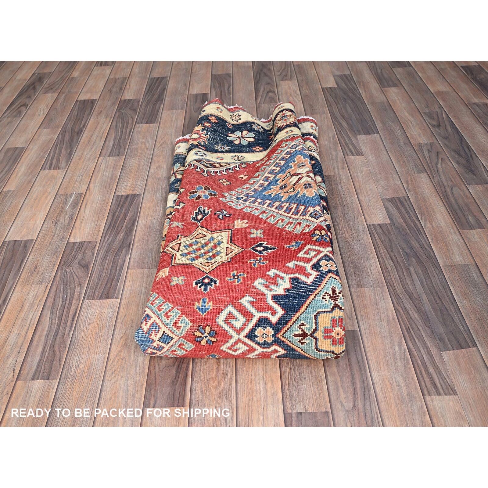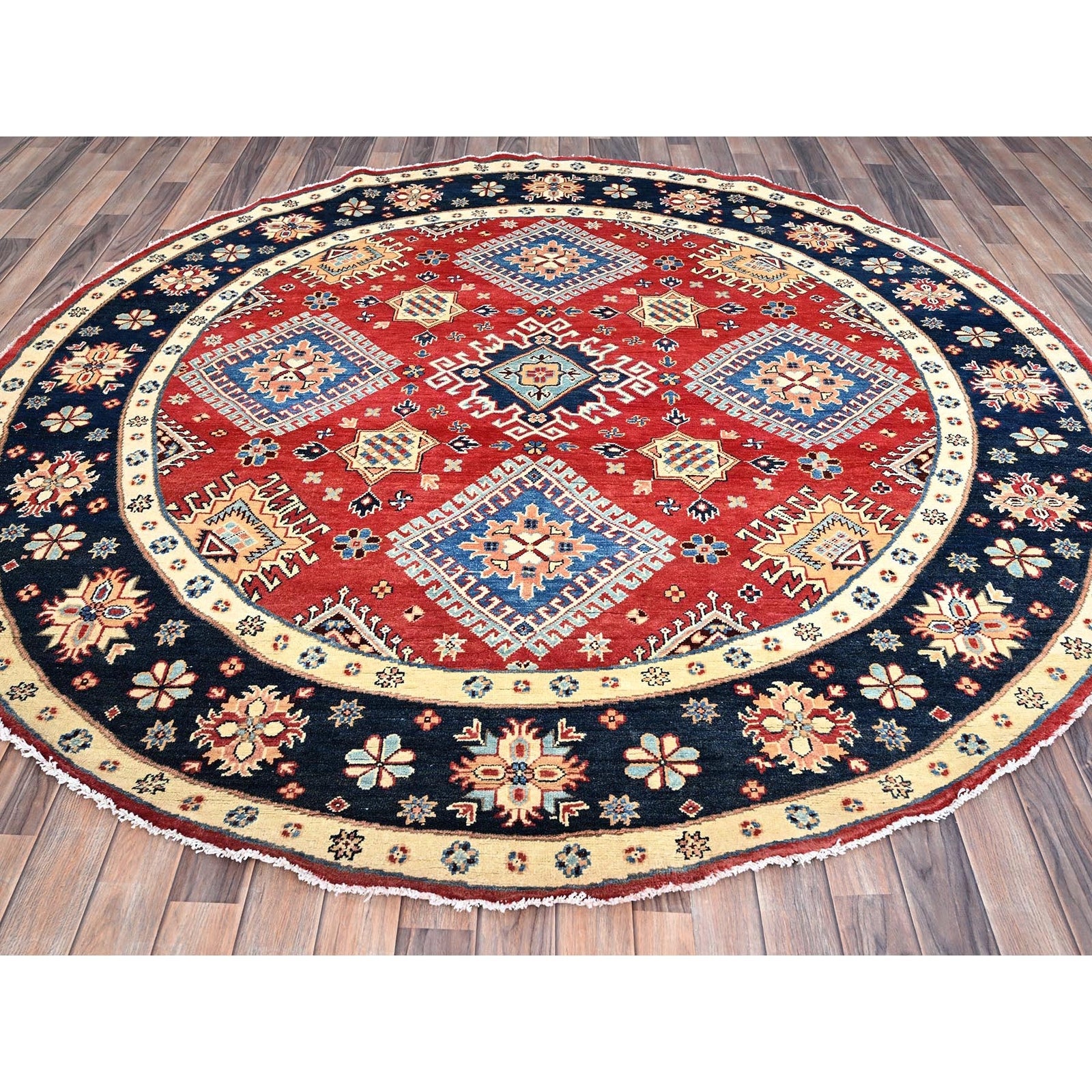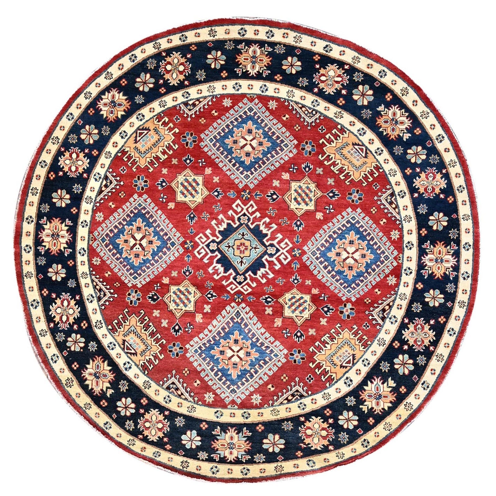 8'X8' Red Hand Knotted Densely Woven Wool Special Kazak Round Rug