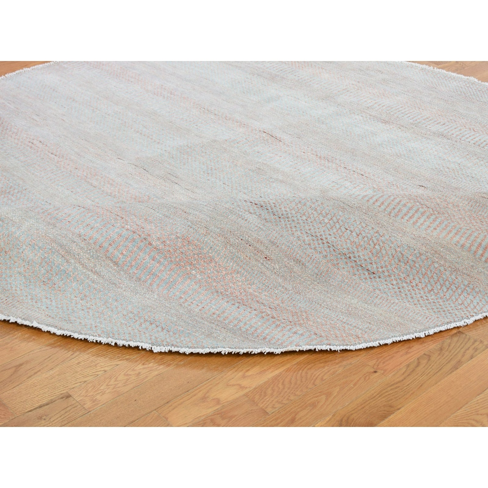 8'X8' Salmon Grass Design Wool And Silk Hand Knotted Round Oriental Rug