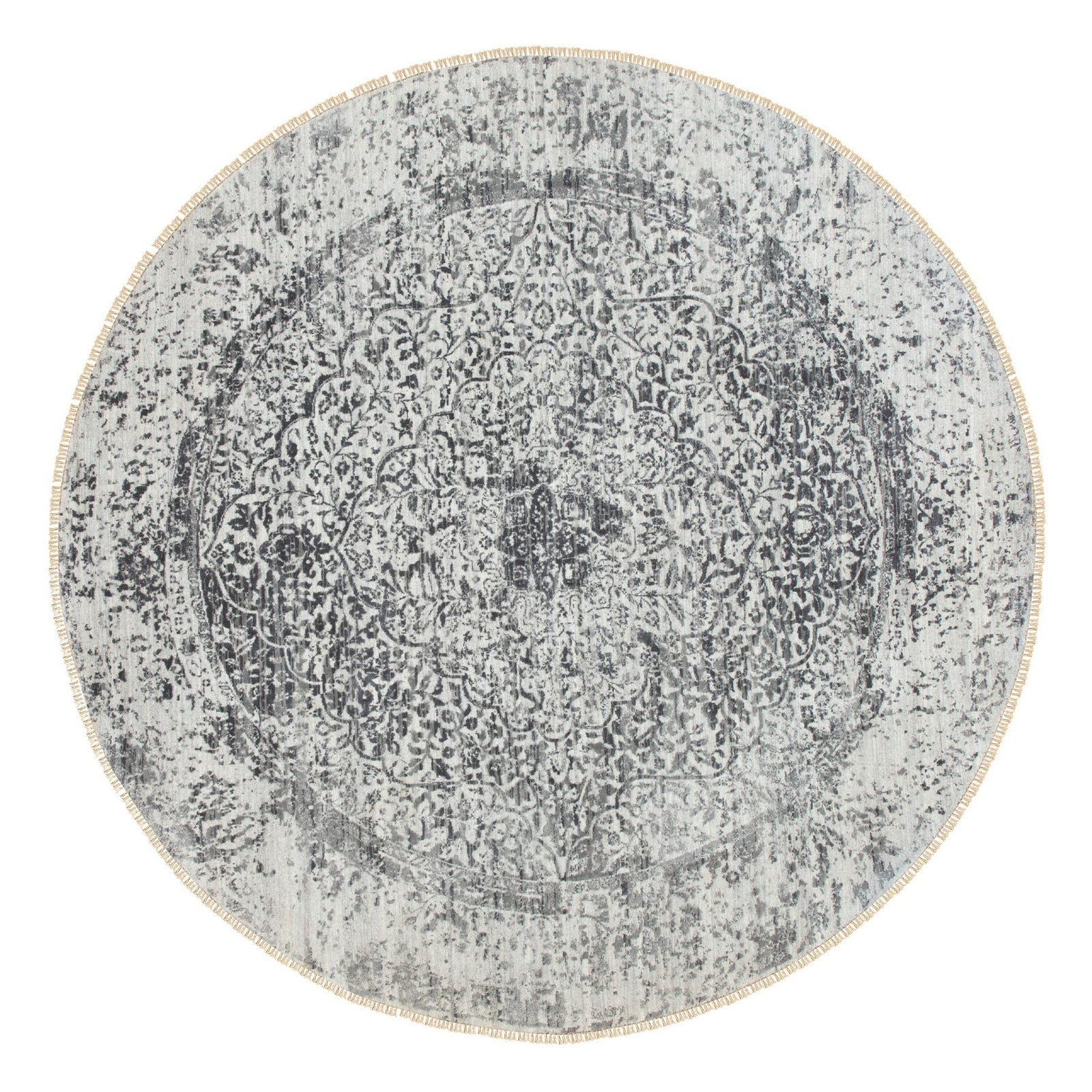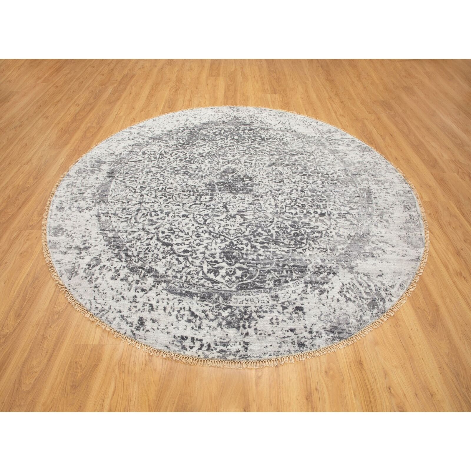 8'X8' Wool And Silk Hand Knotted Broken Design Round Fine Rug
