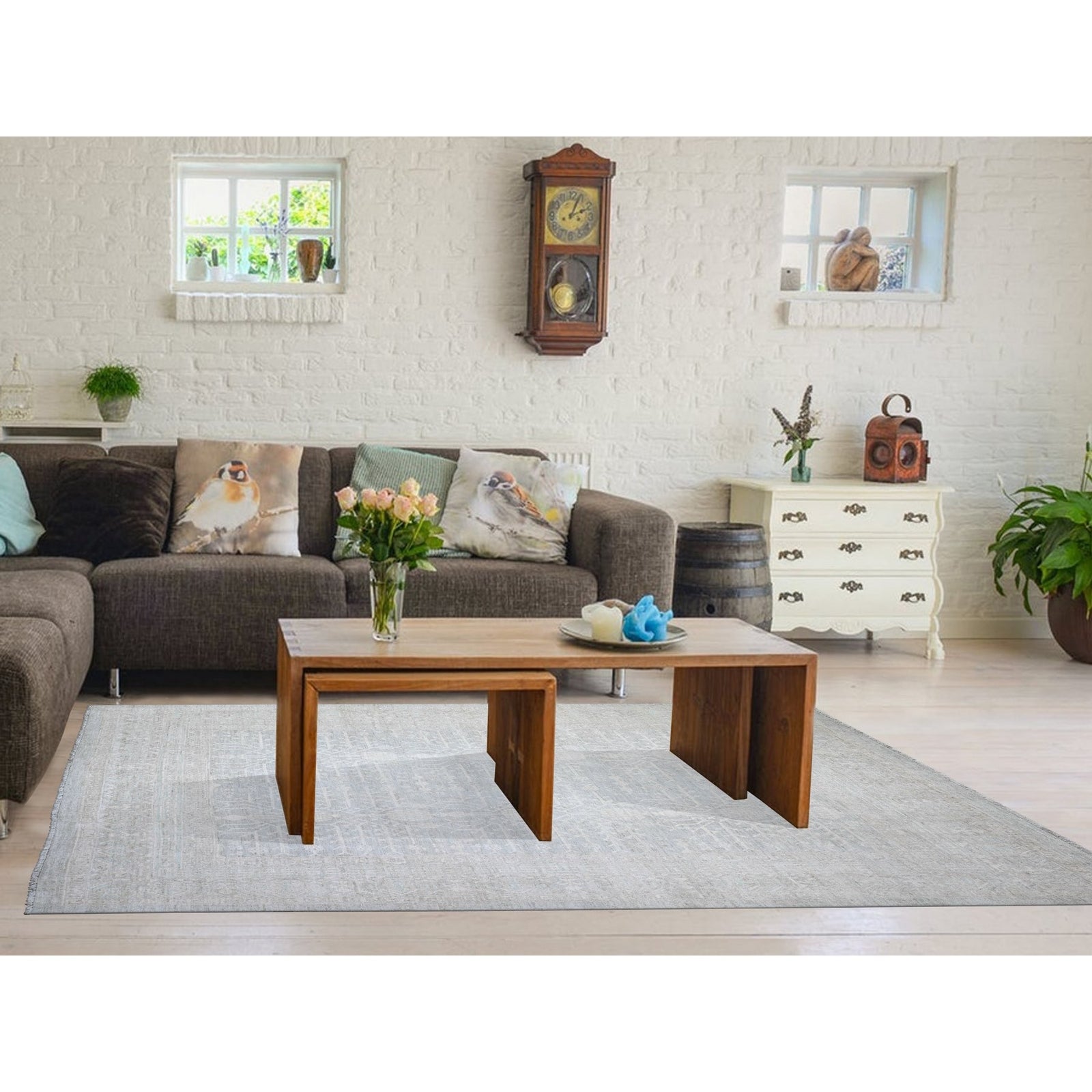 8'X9'10" Chrome Gray Khotan Pomegranate Wool Hand Knotted Oriental Rug