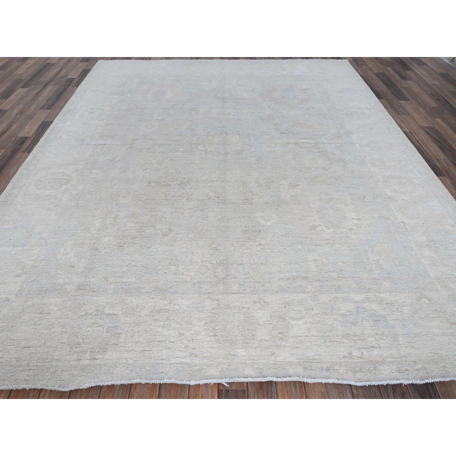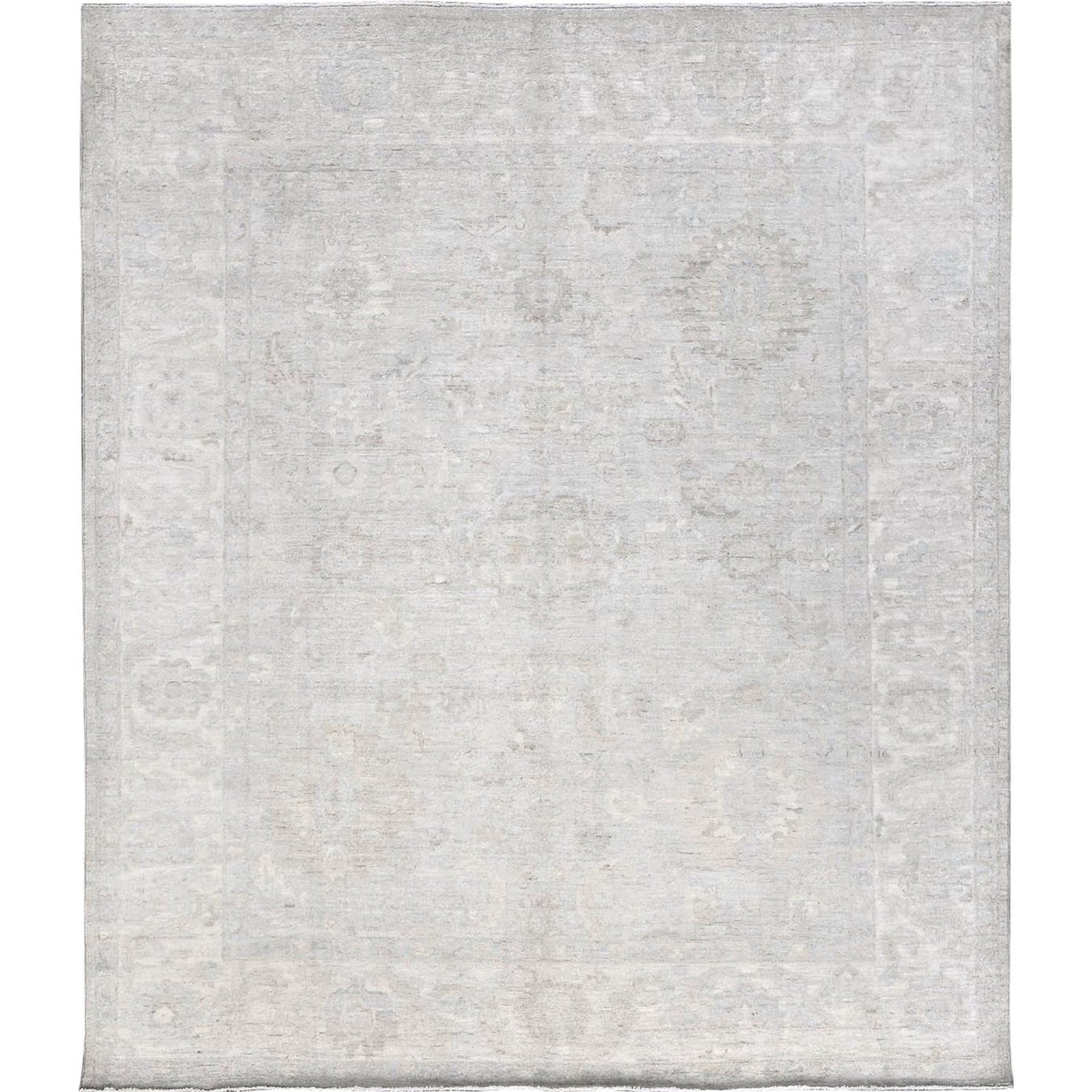8'X9'10" Cloud Gray White Wash Peshawar Hand Knotted 100% Wool Oriental Rug