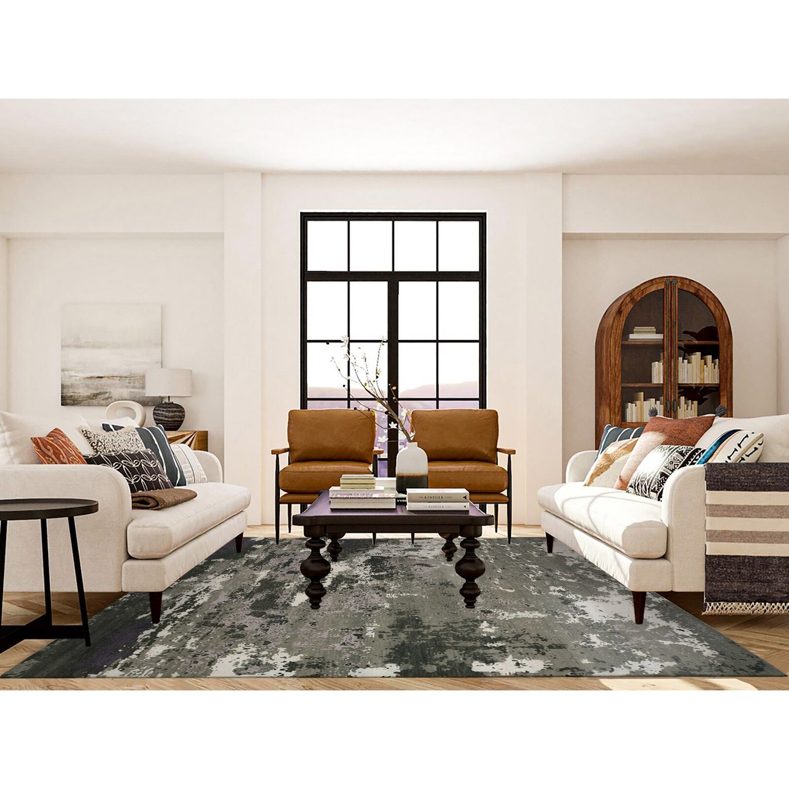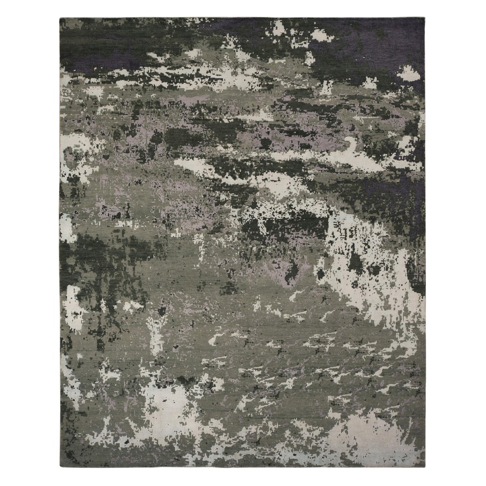 8'X9'10" Gray, Abstract Design, Hand Knotted, Wool And Silk, Oriental Rug