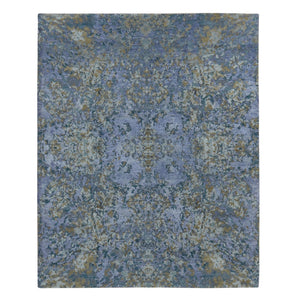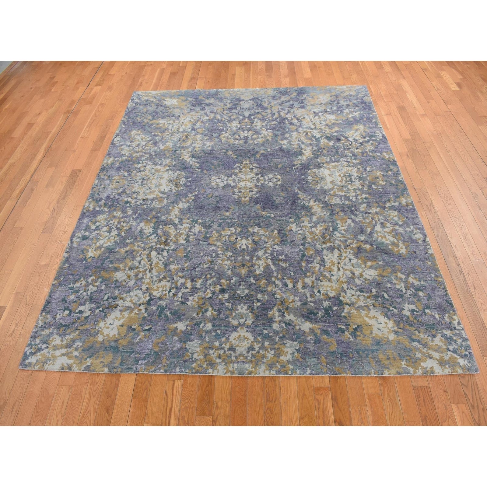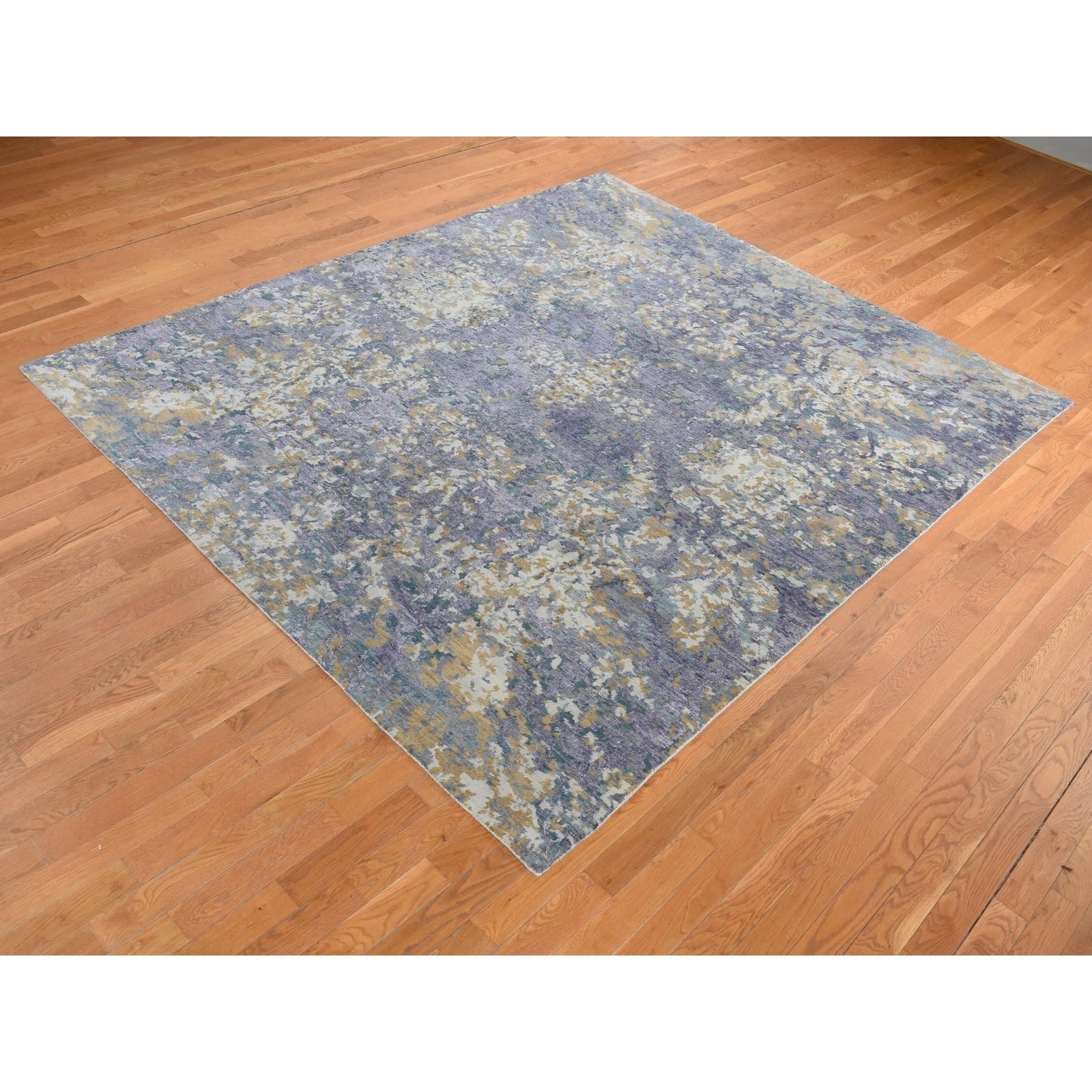 8'X9'10" Gray Abstract Design Wool And Silk Hand Knotted Oriental Rug