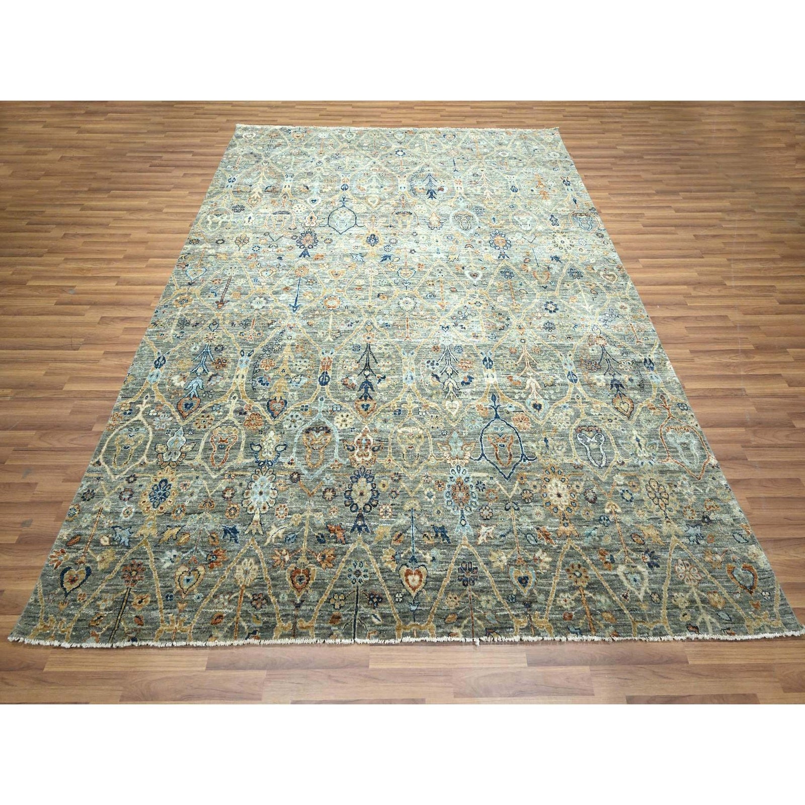 8'X9'10" Gray Zoroastrian Garden Pattern Hand Knotted Pure Wool Rug