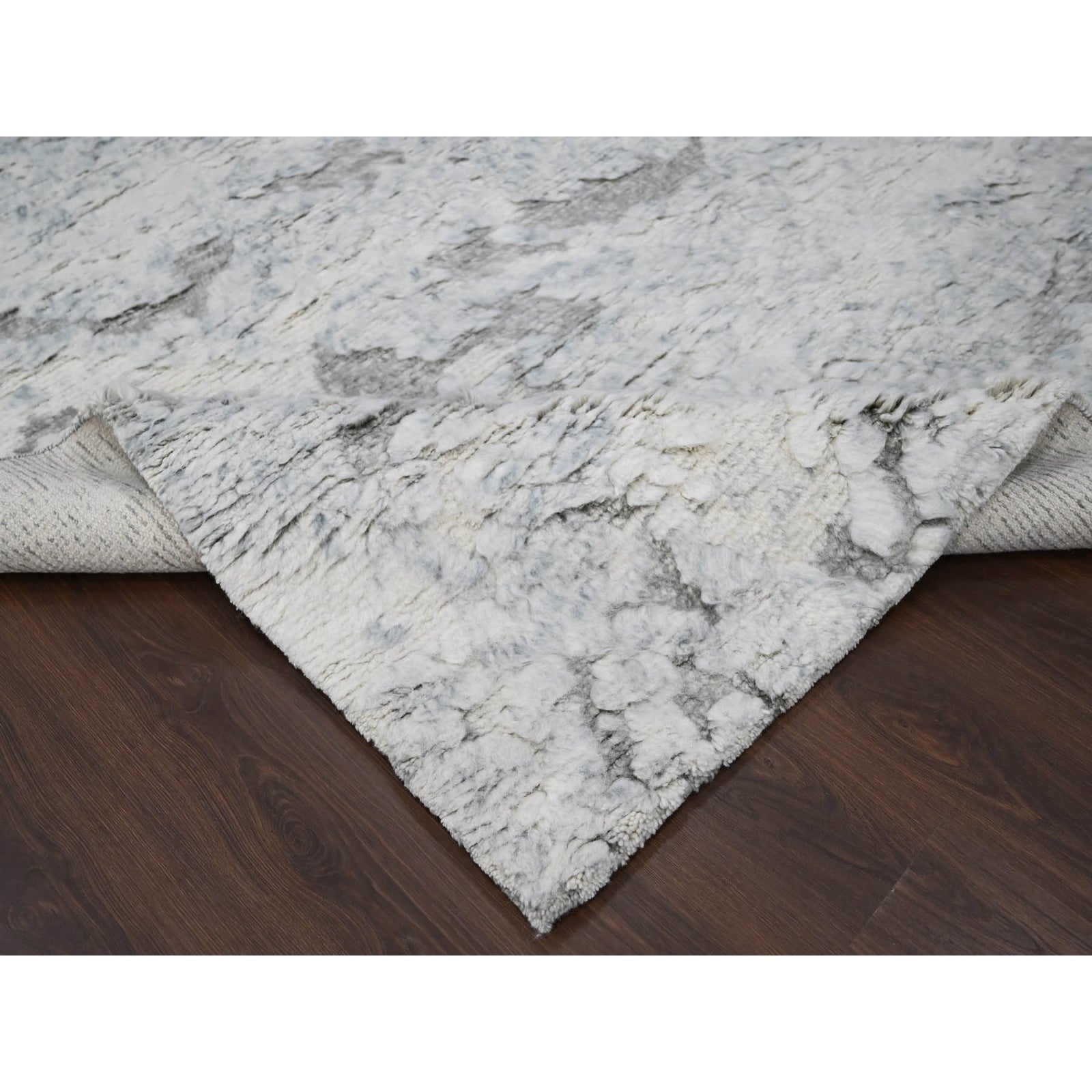 8'X9'10" Ivory Thick & Plush Moroccan Contemporary Wool Hand Knotted Rug