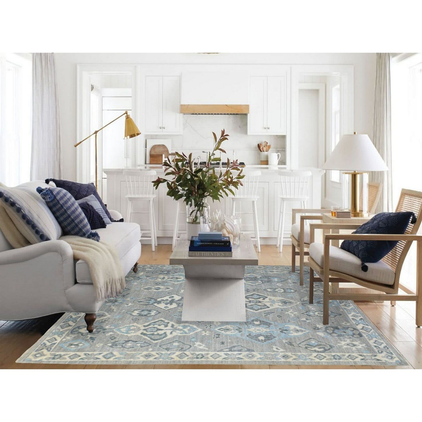 8'X9'10" Wool Hand Knotted Gunmetal Gray Afghan Angora Oushak Rug