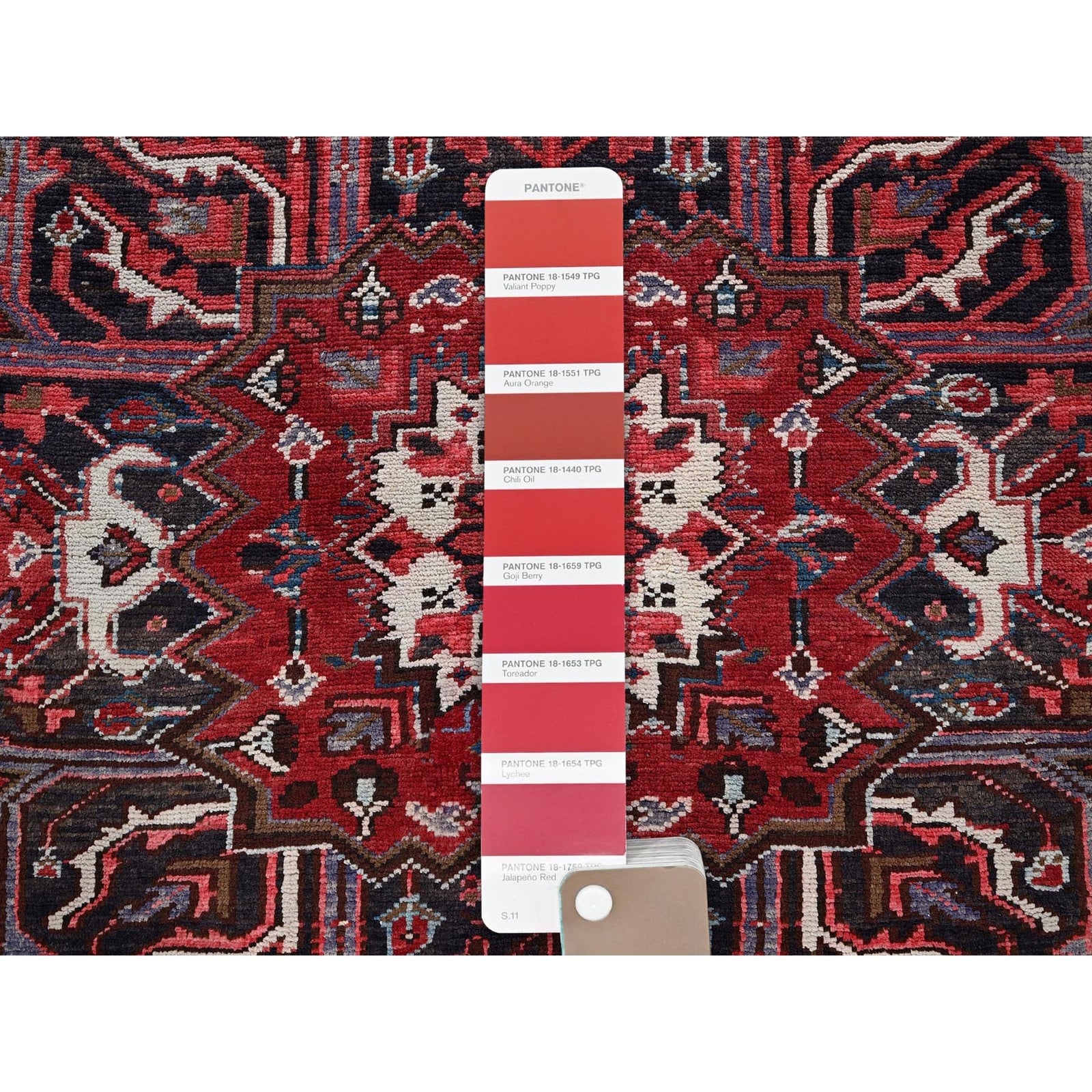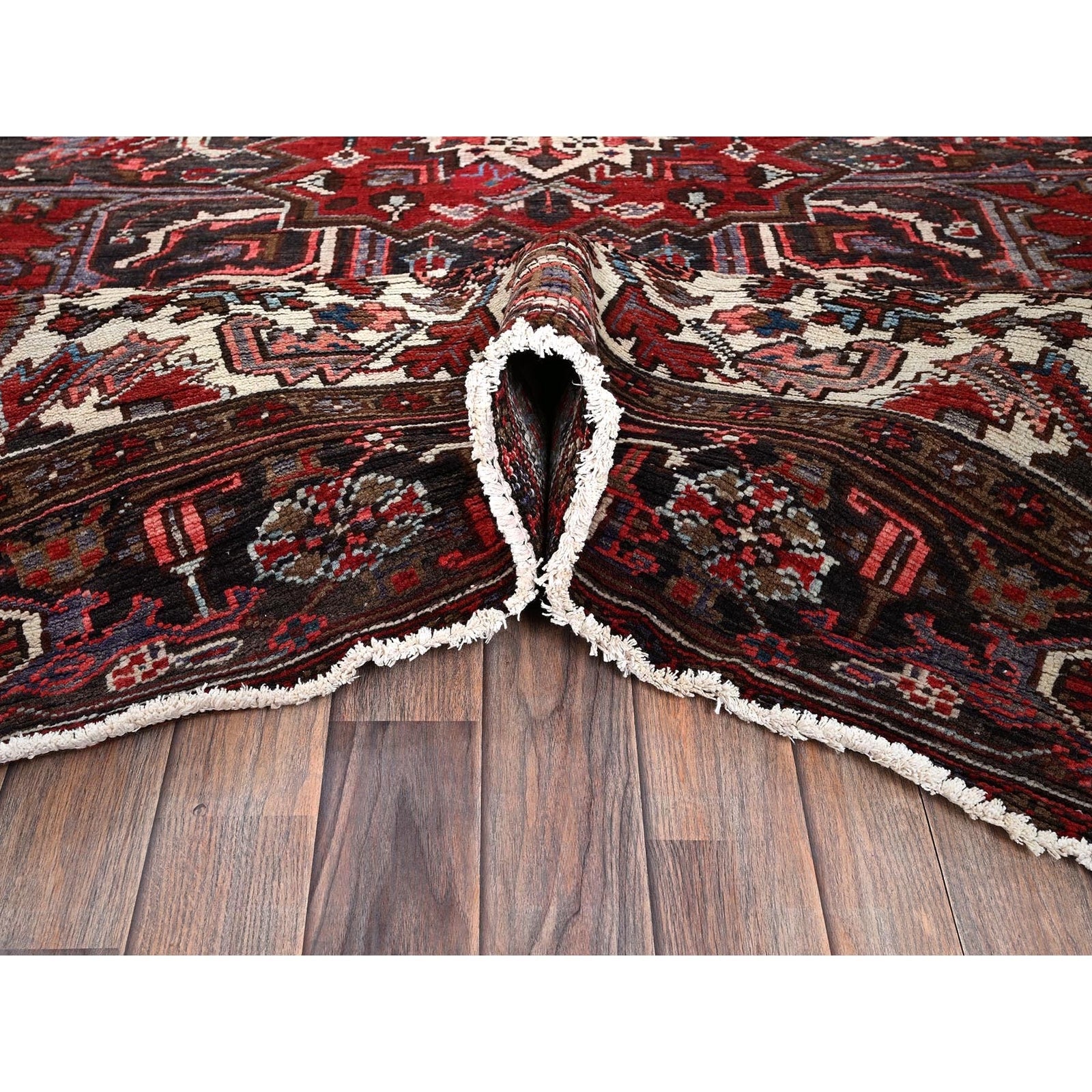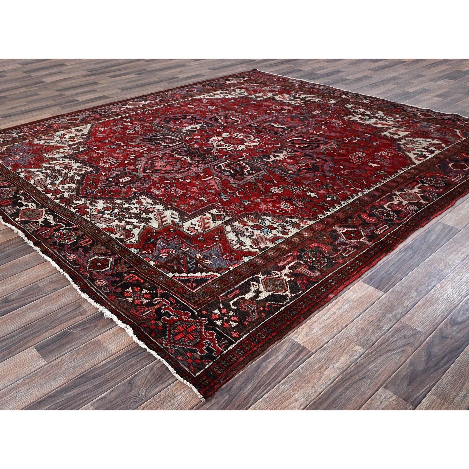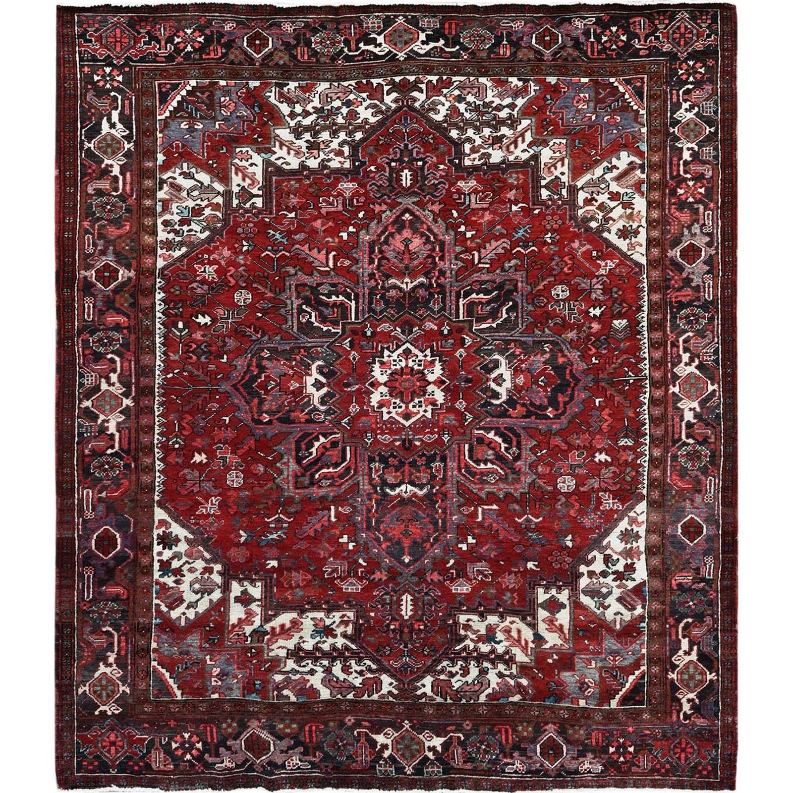 8'X9'2" Red Vintage Zoroastrian Heris Pure Wool Hand Knotted Worn Down Rug