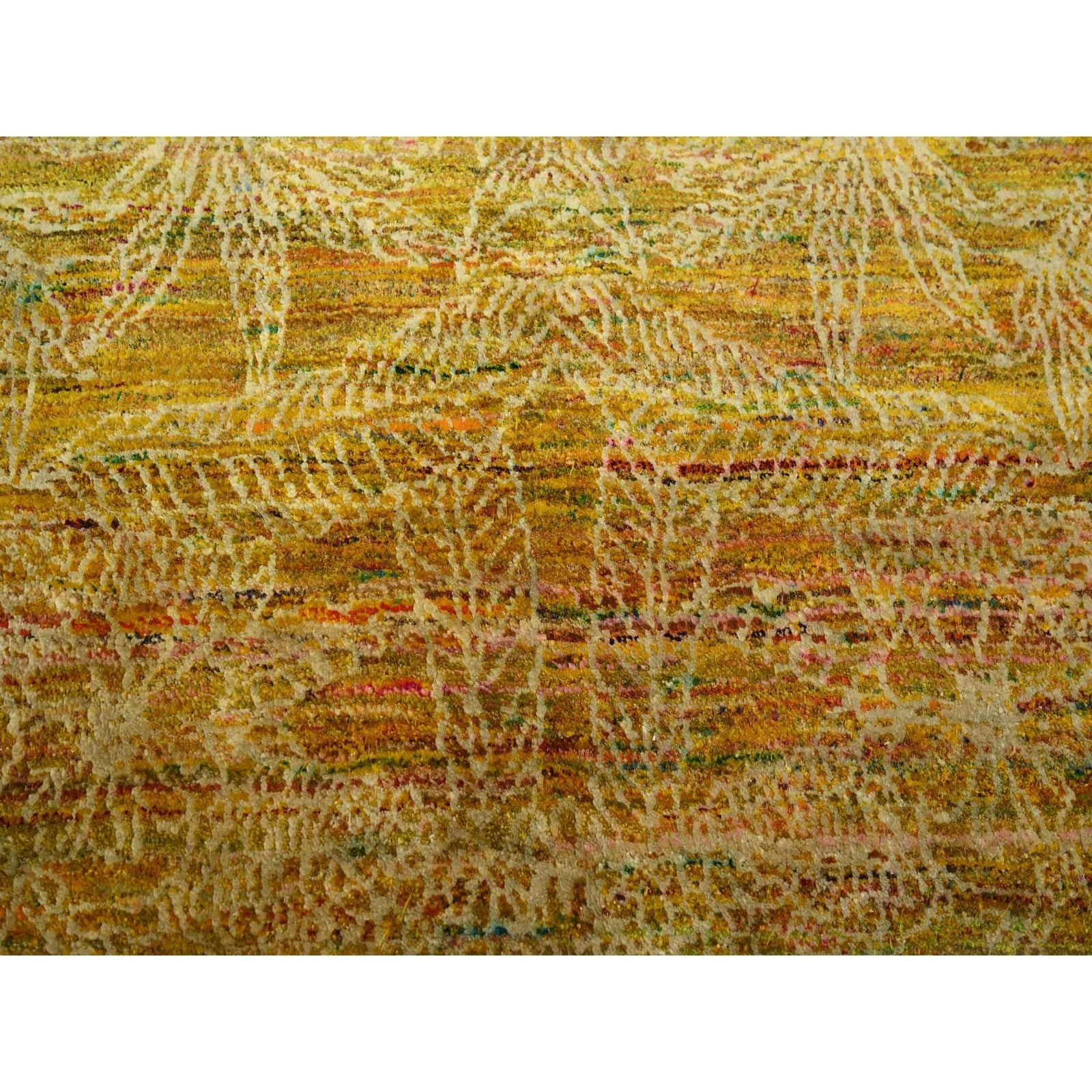 8'X9'3" Golden Brown With Green Modern Design Sari Silk Hand Knotted Rug