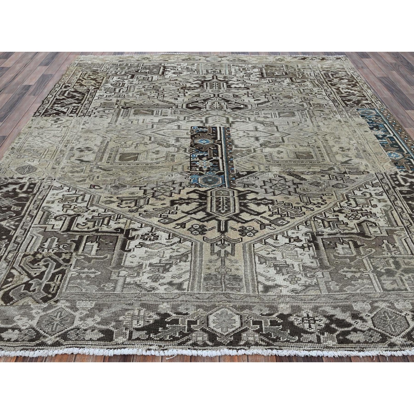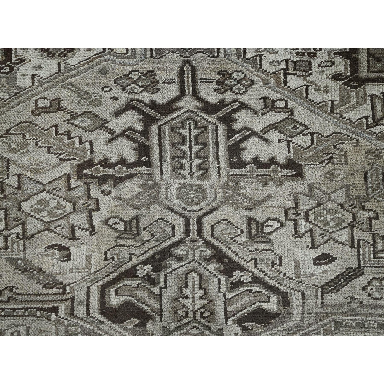 8'X9'4" Gray Vintage Zoroastrian Heris Pure Wool Hand Knotted Squarish Rug