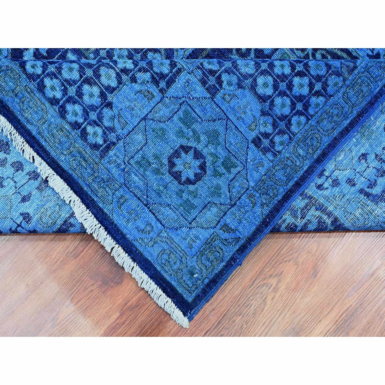 8'X9'6" Blue Peshawar Mamluk Design Distressed 100% Wool Hand Knotted Rug