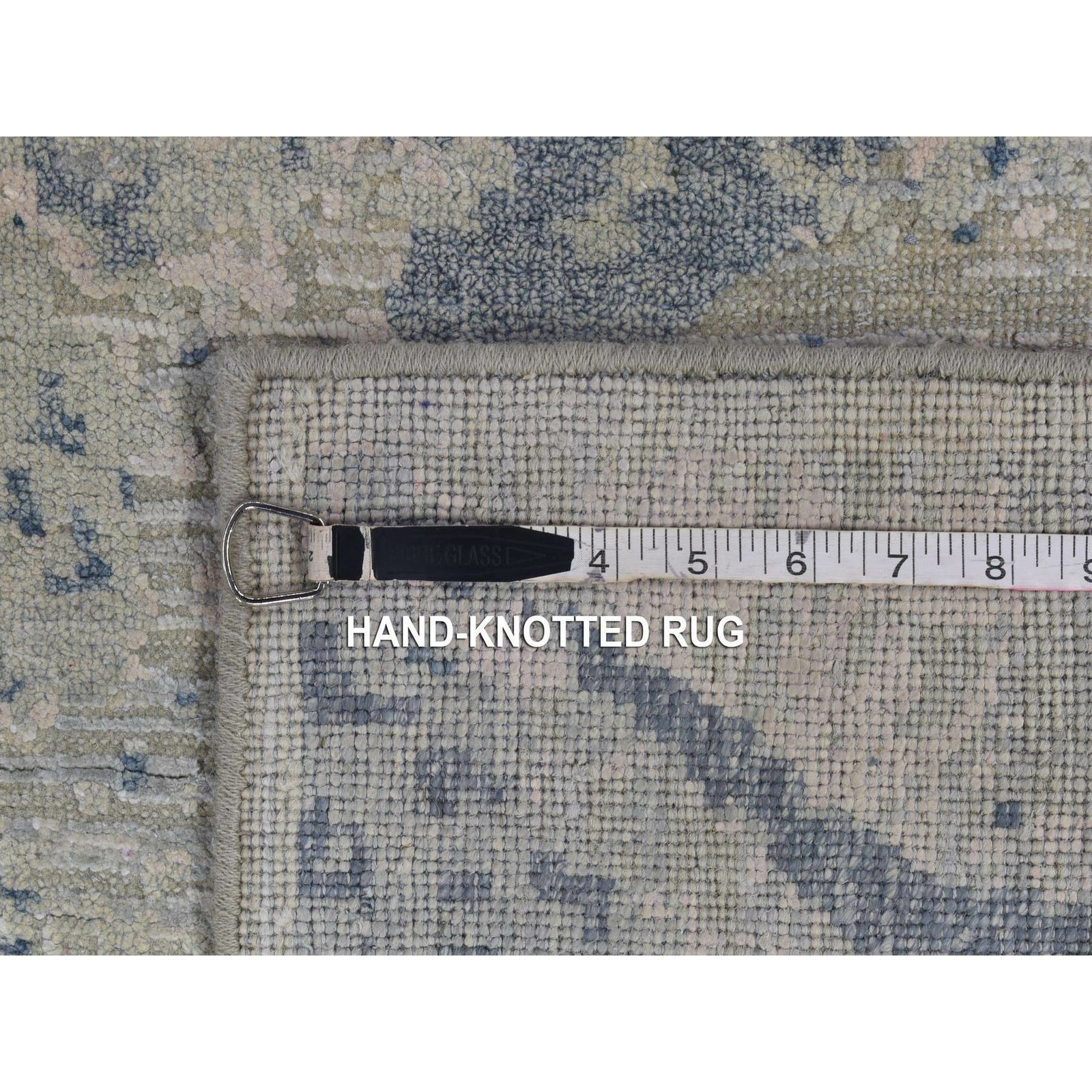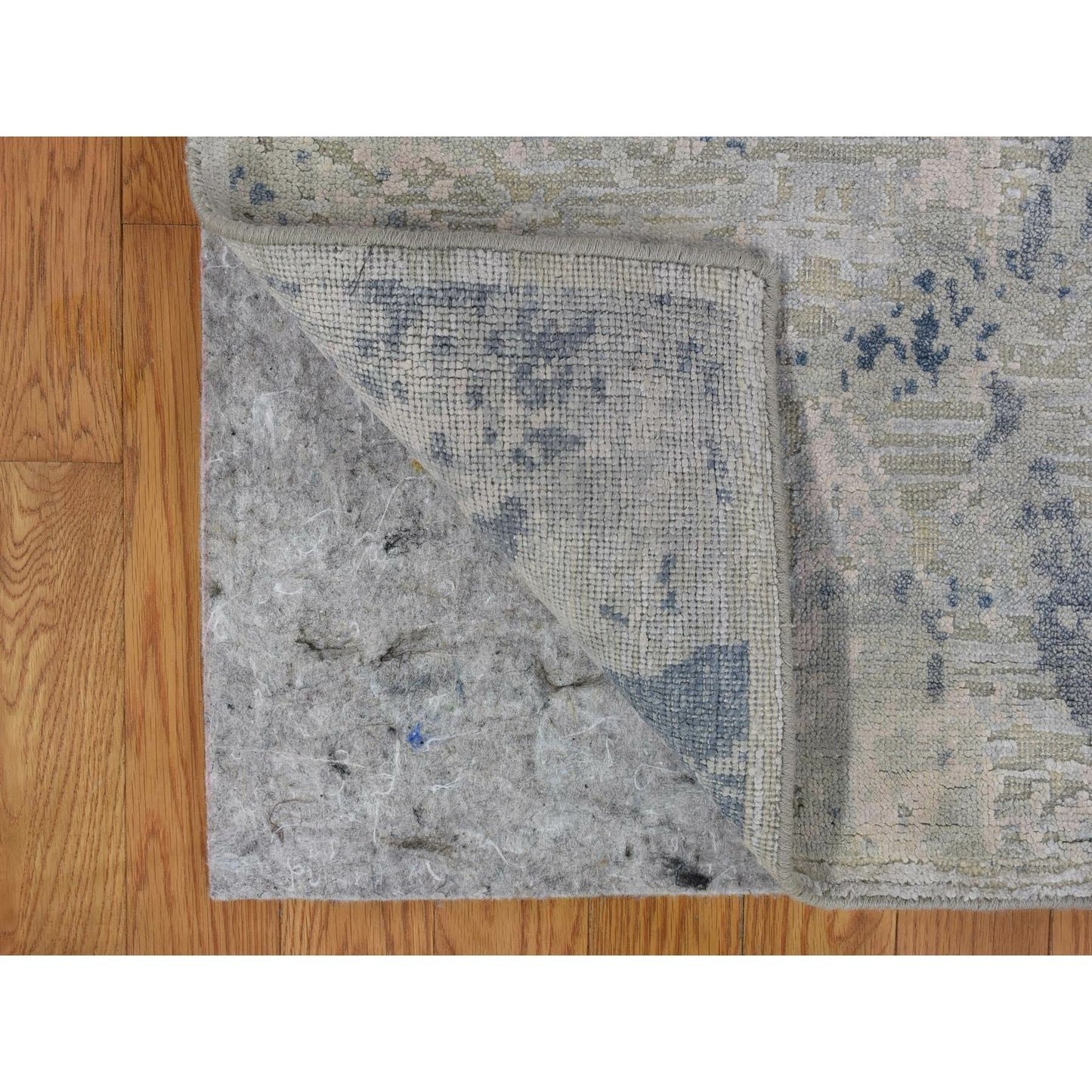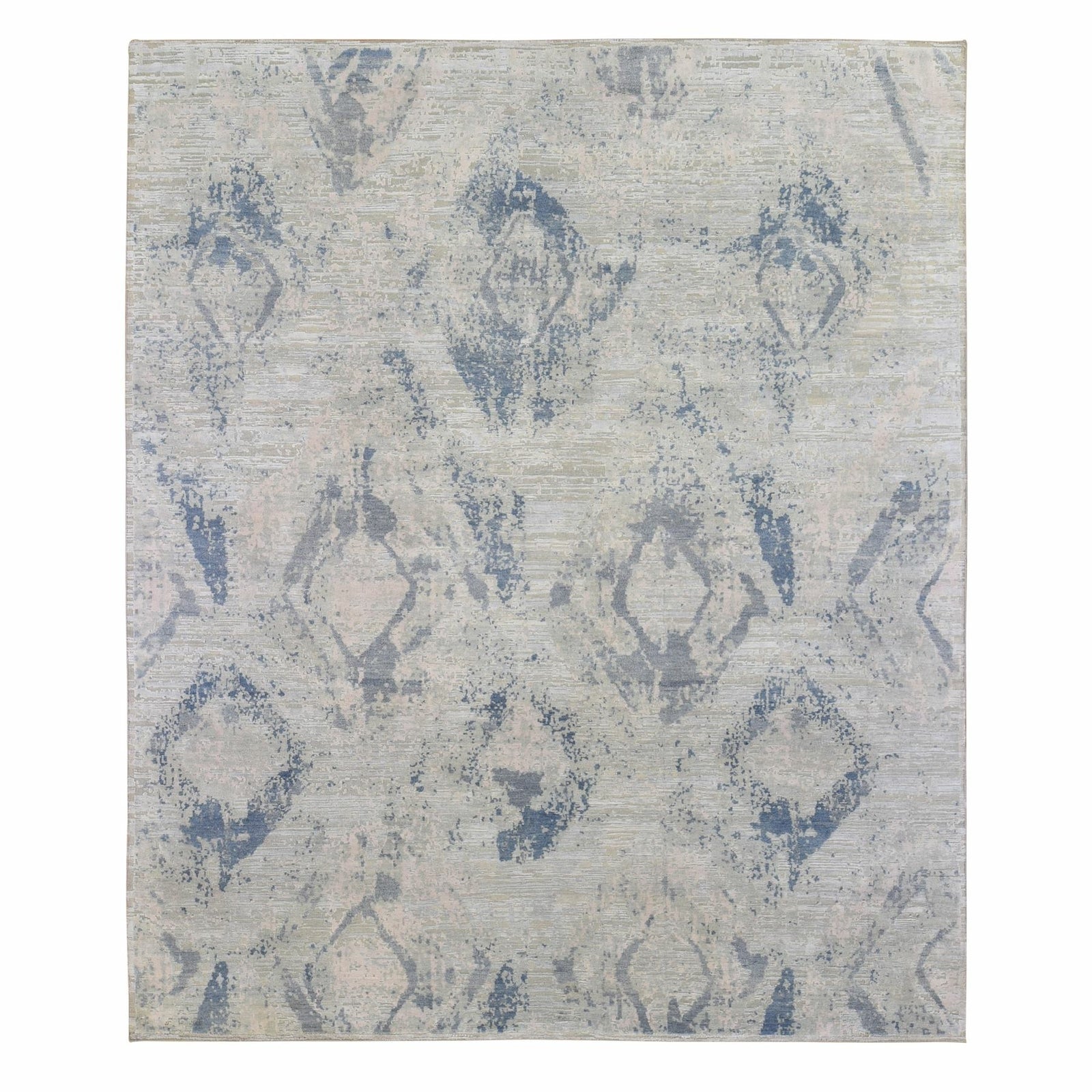 8'X9'6" Silver Blue Silk With Textured Wool Modern Hand Knotted Rug