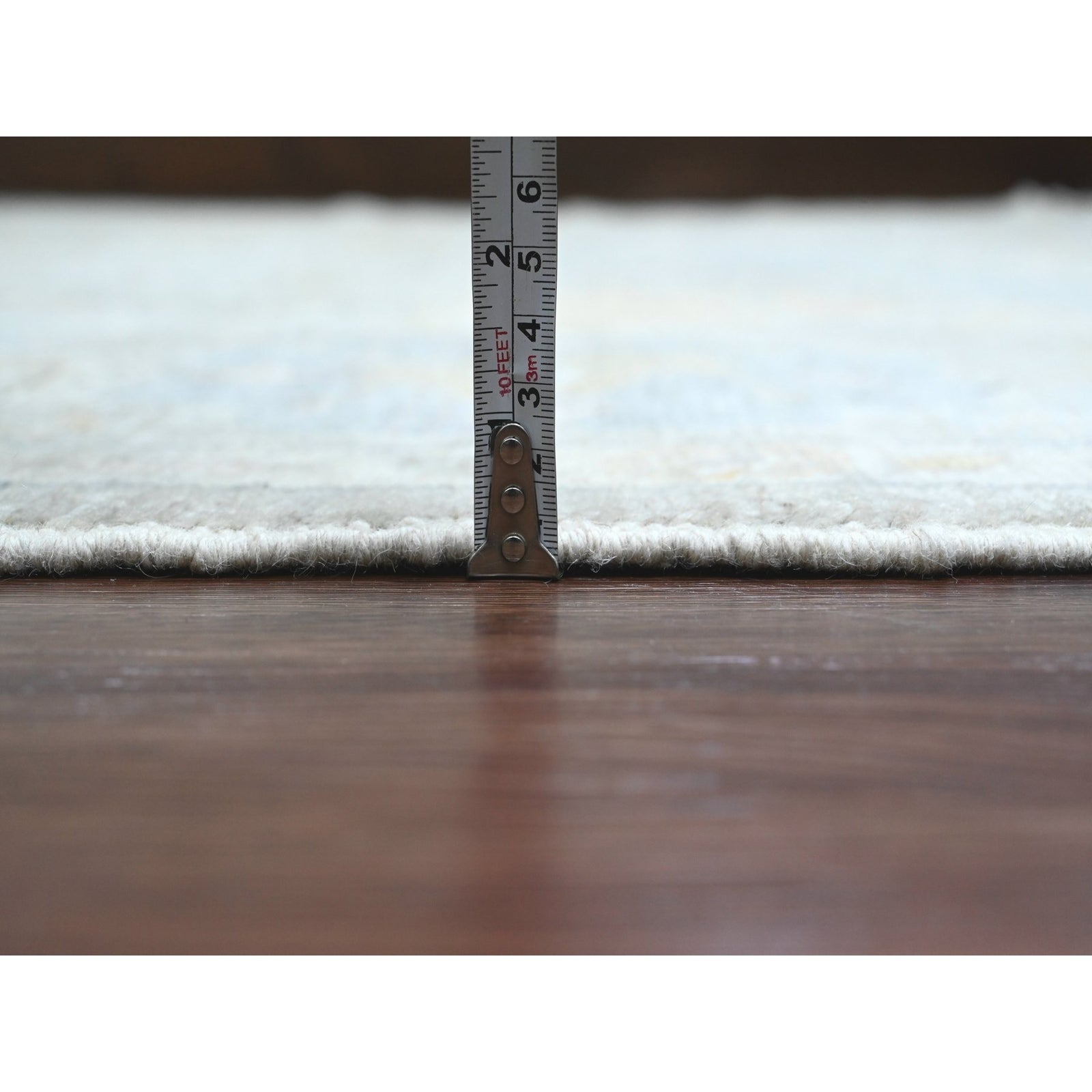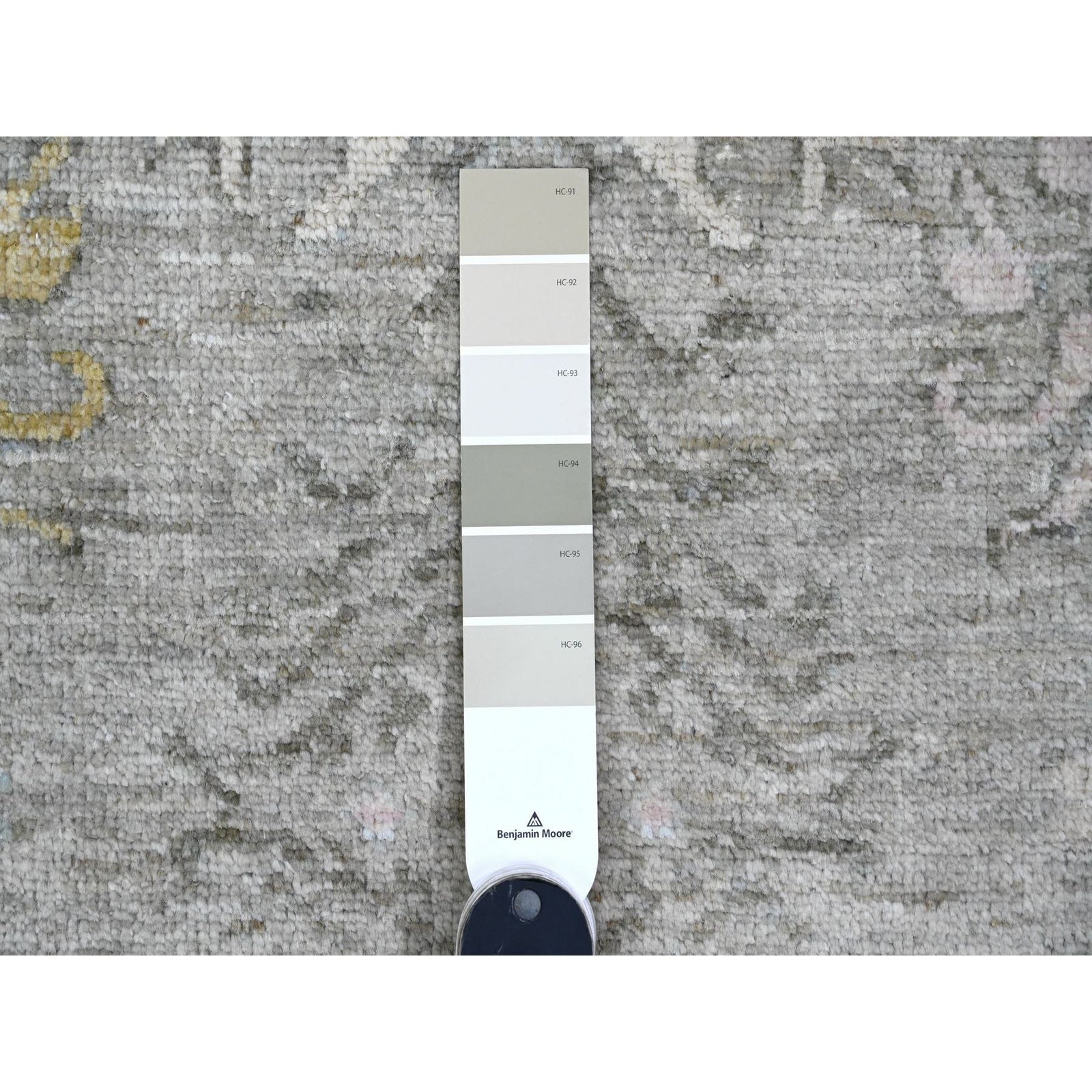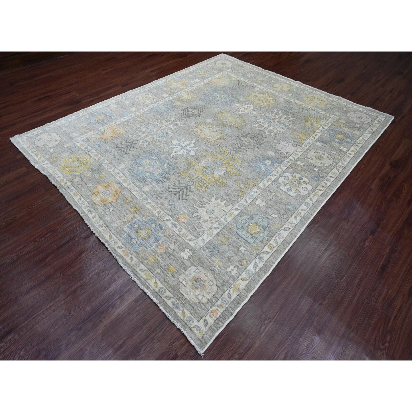 8'X9'7" Gray Afghan Angora Oushak Leaf Pattern Hand Knotted Pure Wool Rug