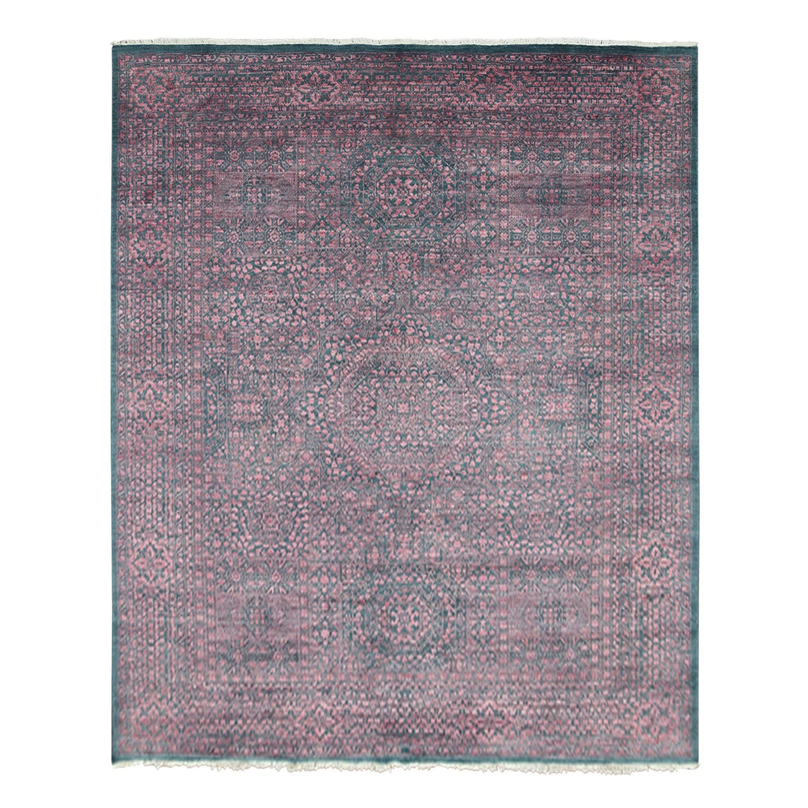 8'X9'9" Dark Green Obscured Mamluk Design Wool And Silk Hand Knotted Rug