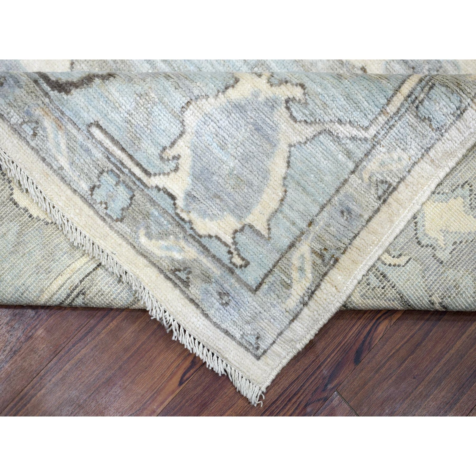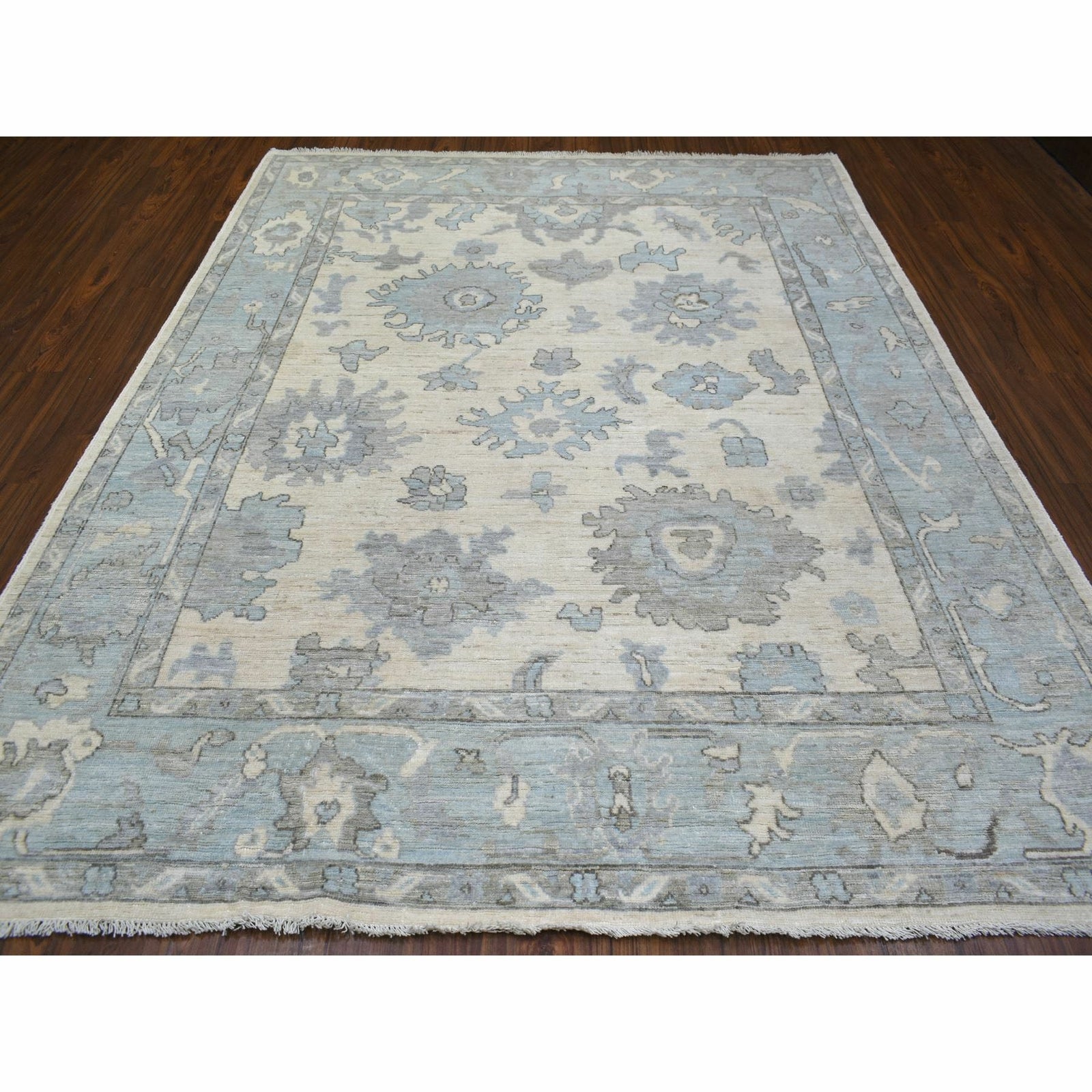 8'X9'9" Ivory Hand Knotted Afghan Angora Oushak Soft Wool Rug