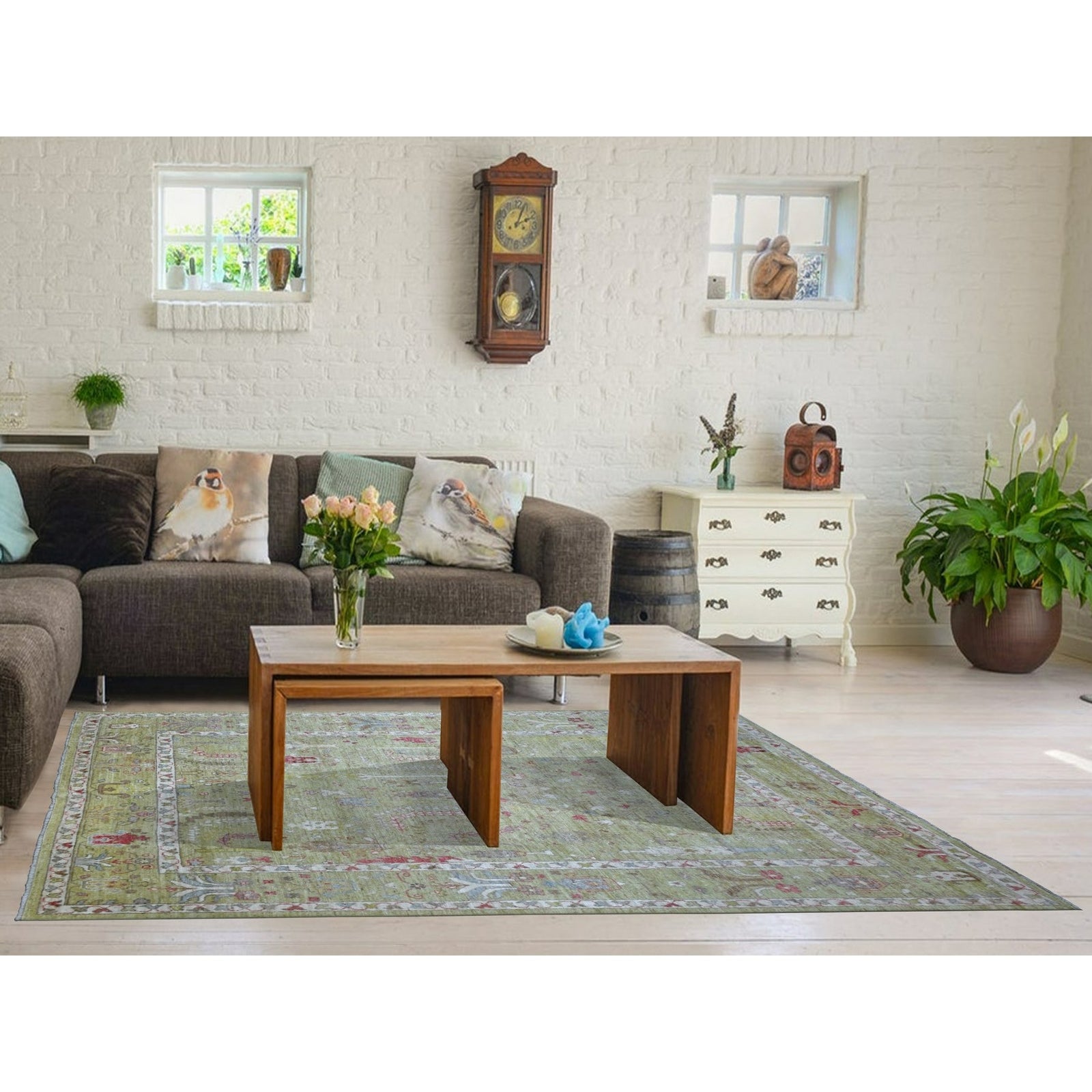 8'X9'9" Lime Green Afghan Angora Ushak Natural Wool Hand Knotted Rug