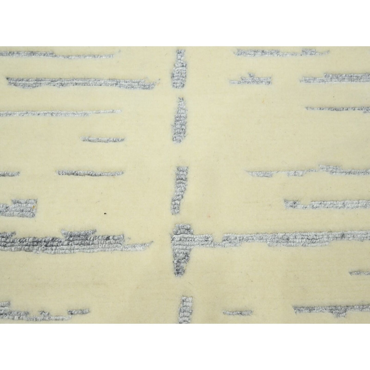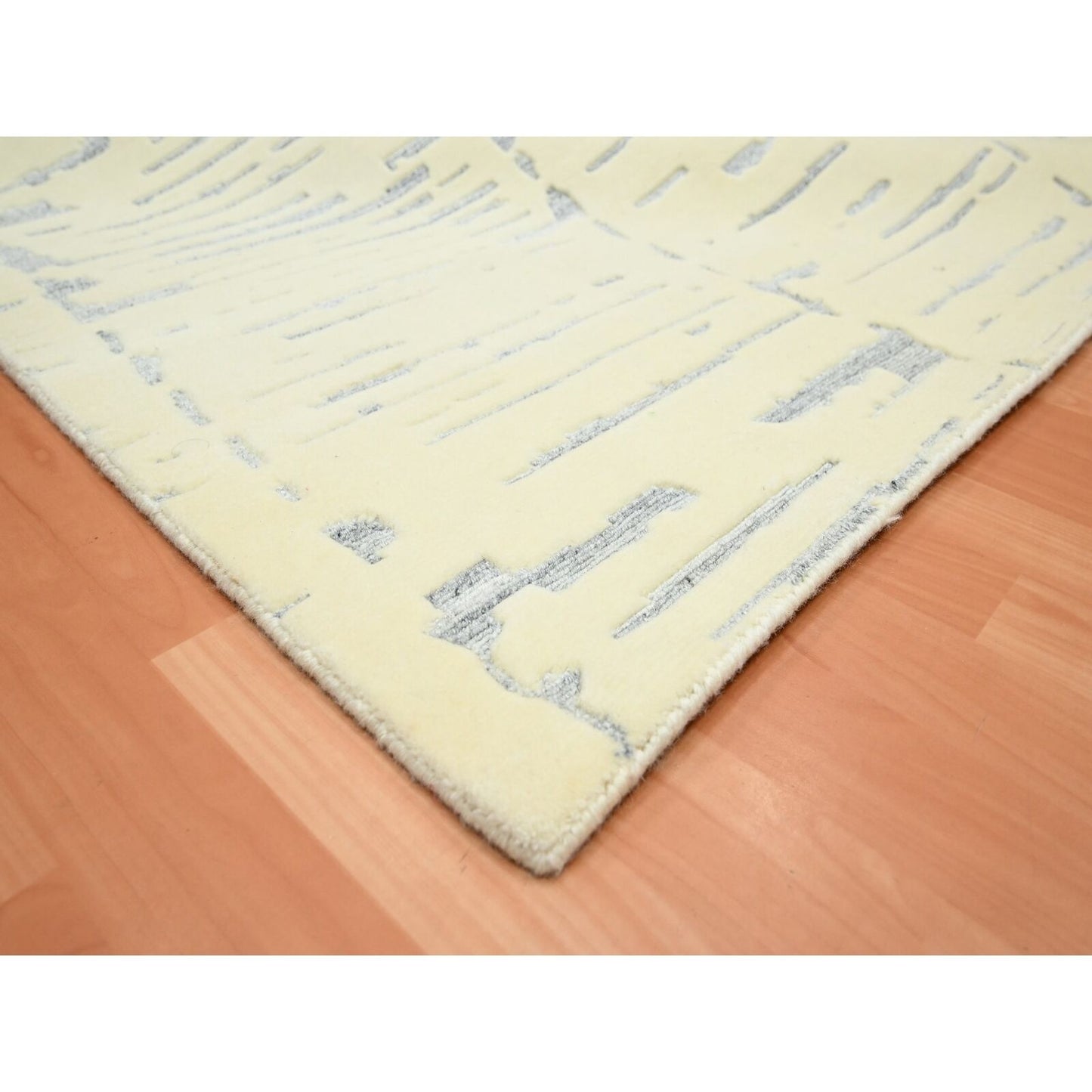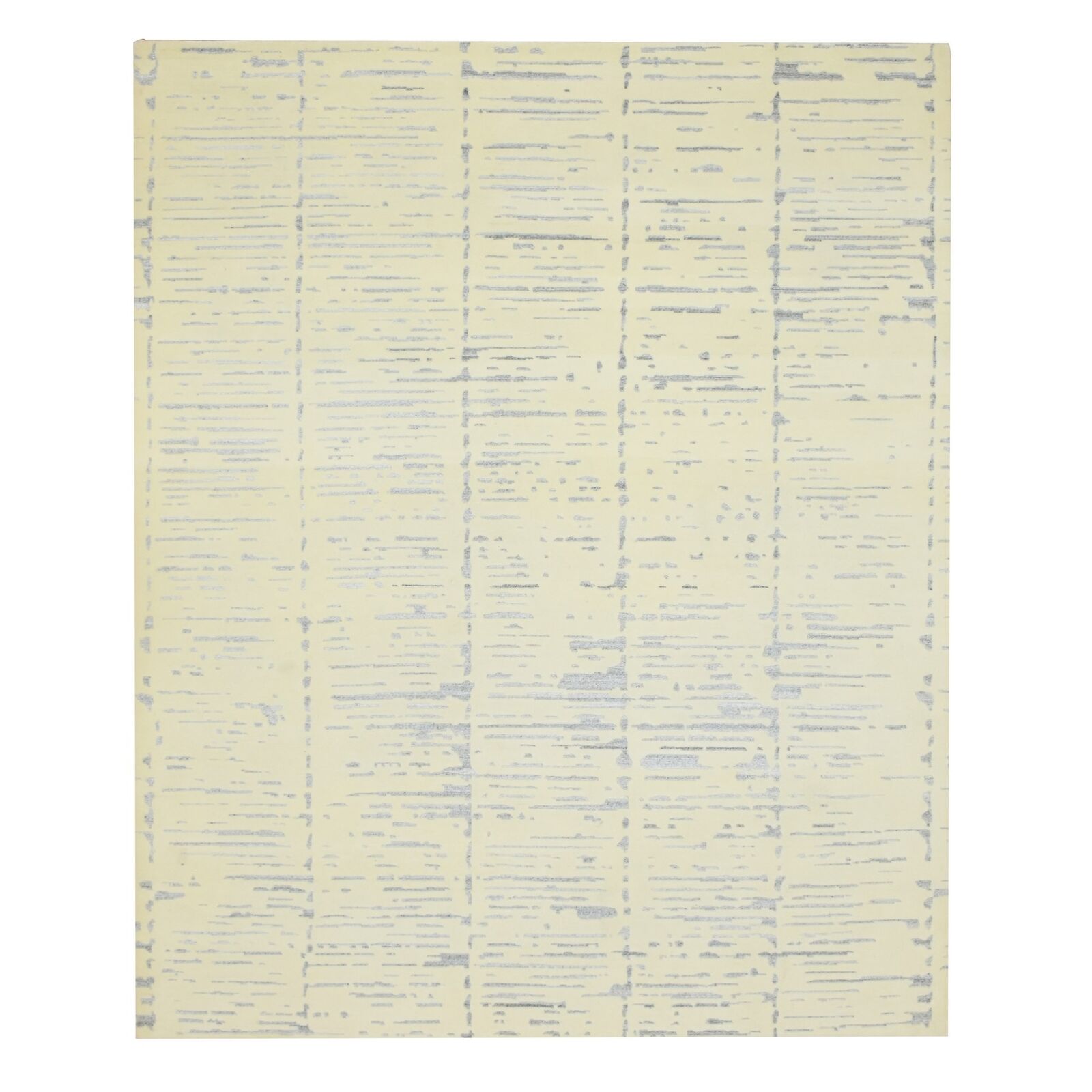 8'X9'9" White Modern Design Textured Weave Wool & Silk Hand Knotted Rug