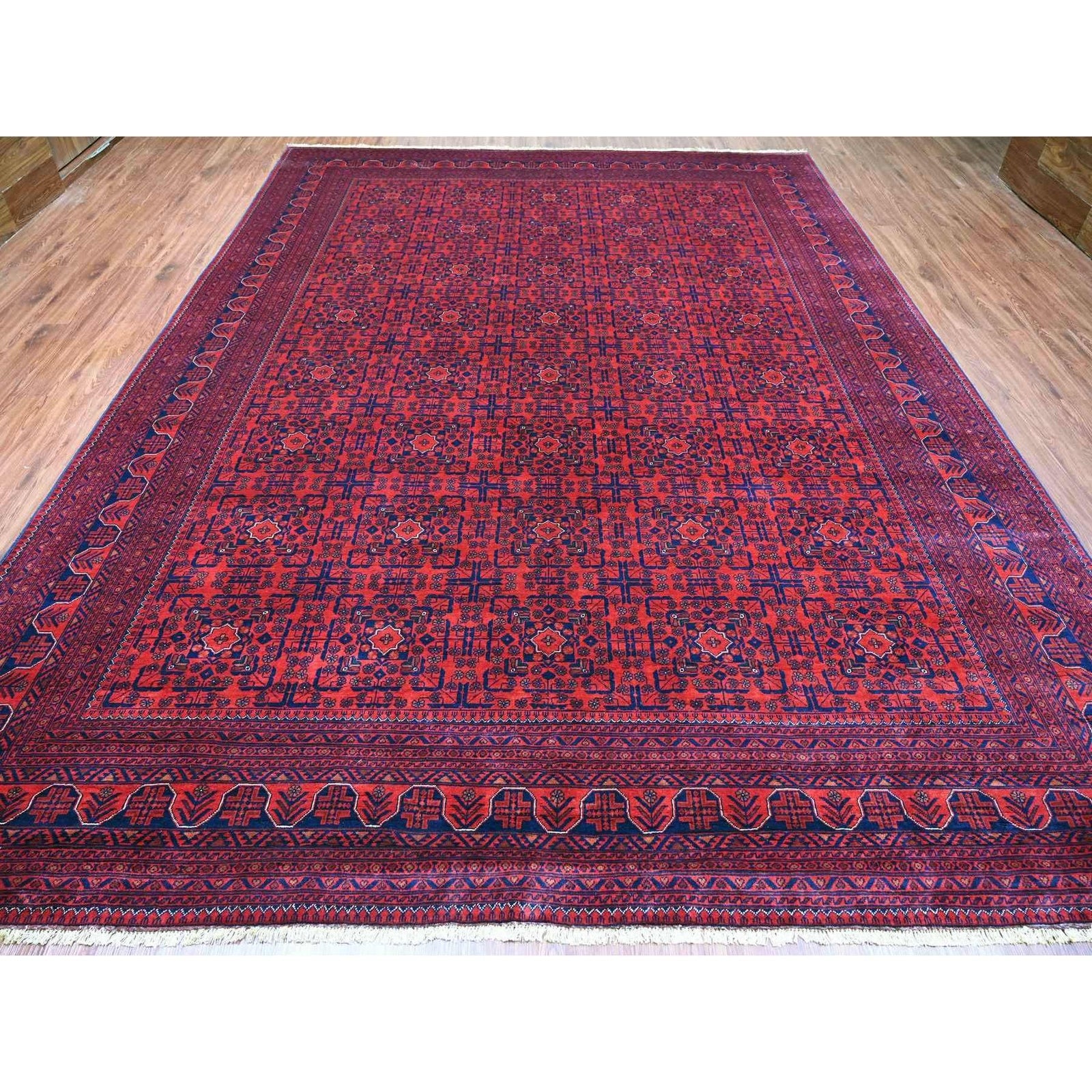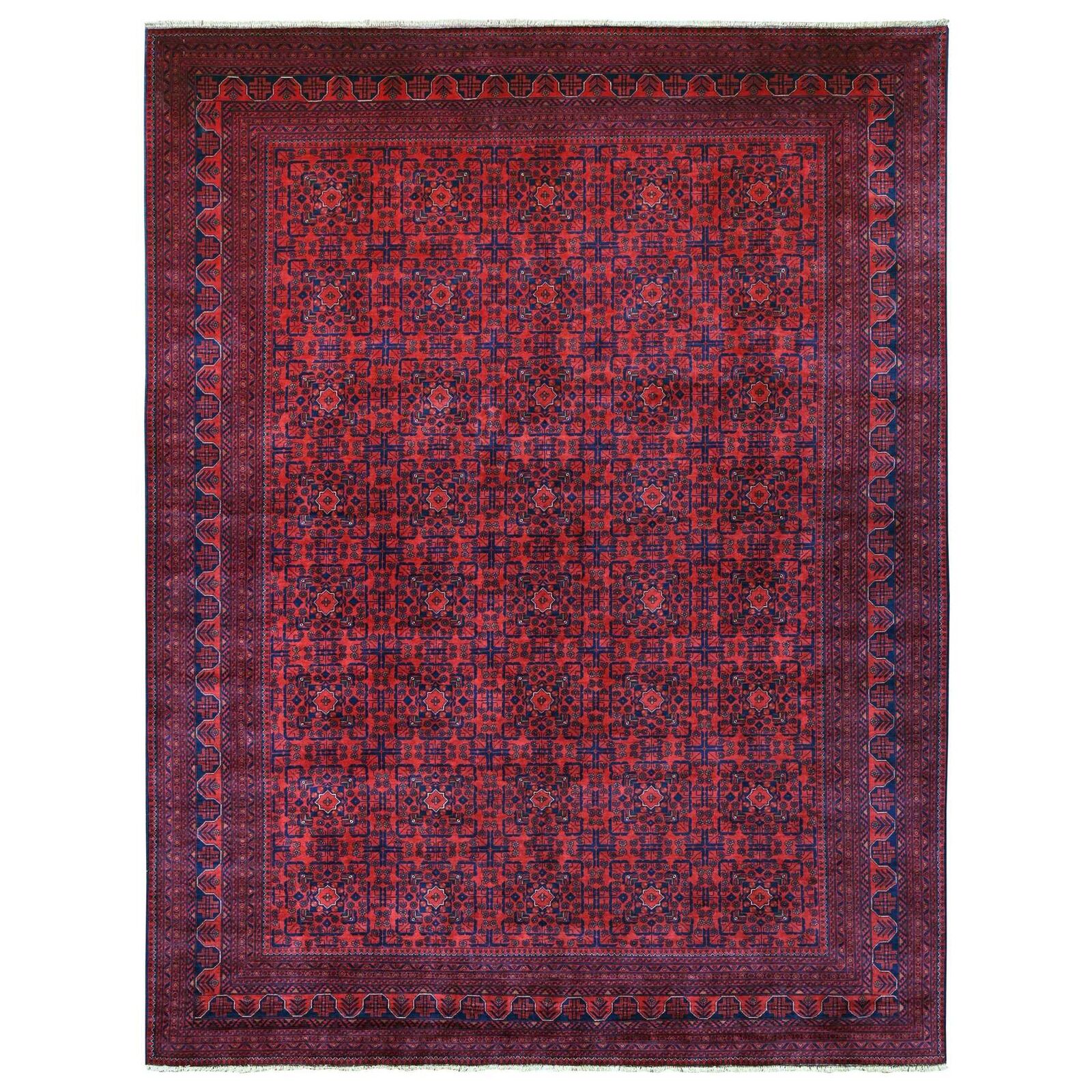 9'10"X12'10" Red Hand Knotted Afghan Khamyab Geometric Design Wool Rug