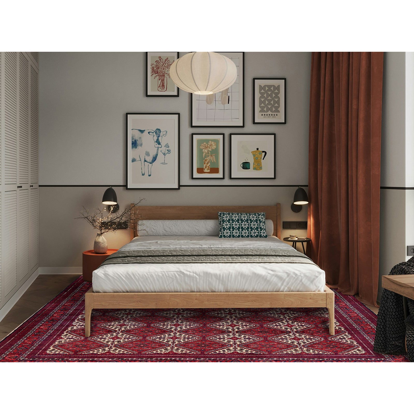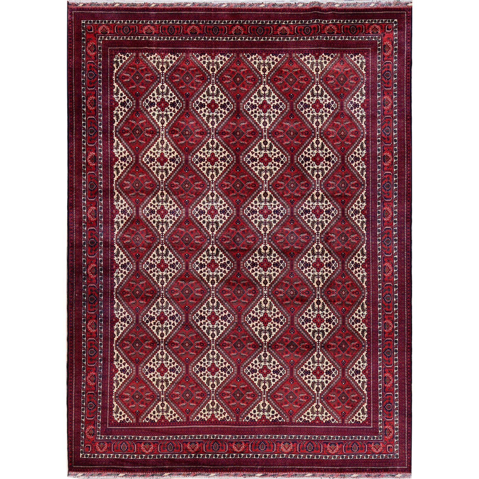 9'10"X13' Red Afghan Khamyab With Geometric Design Hand Knotted Wool Rug