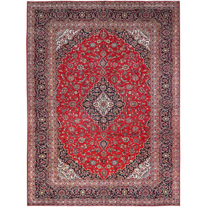 9'10"X13'1" Ketchup Red Hand Knotted Wool Vintage Kishoon Full Pile Rug