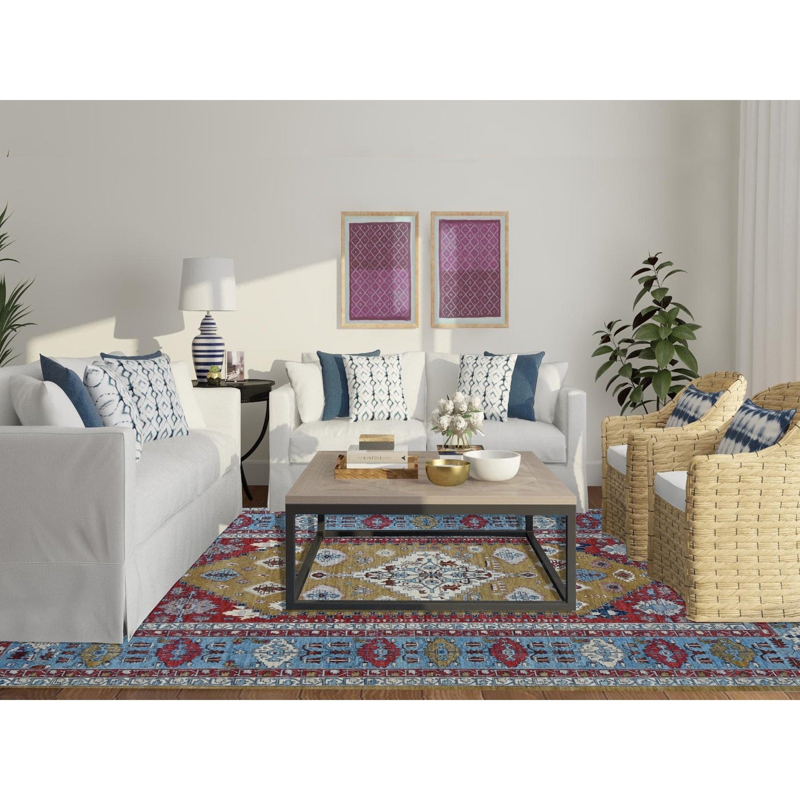 9'10"X13'10" Green Geometric Bookshaish Design Hand Knotted Pure Wool Rug