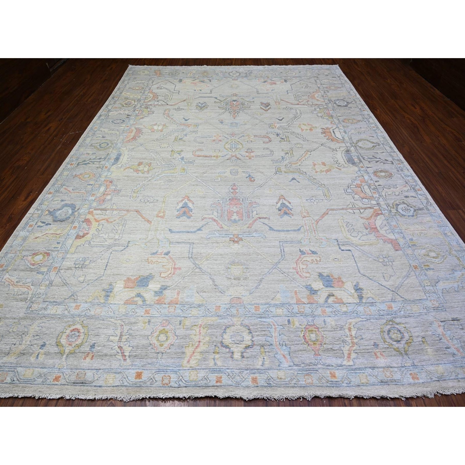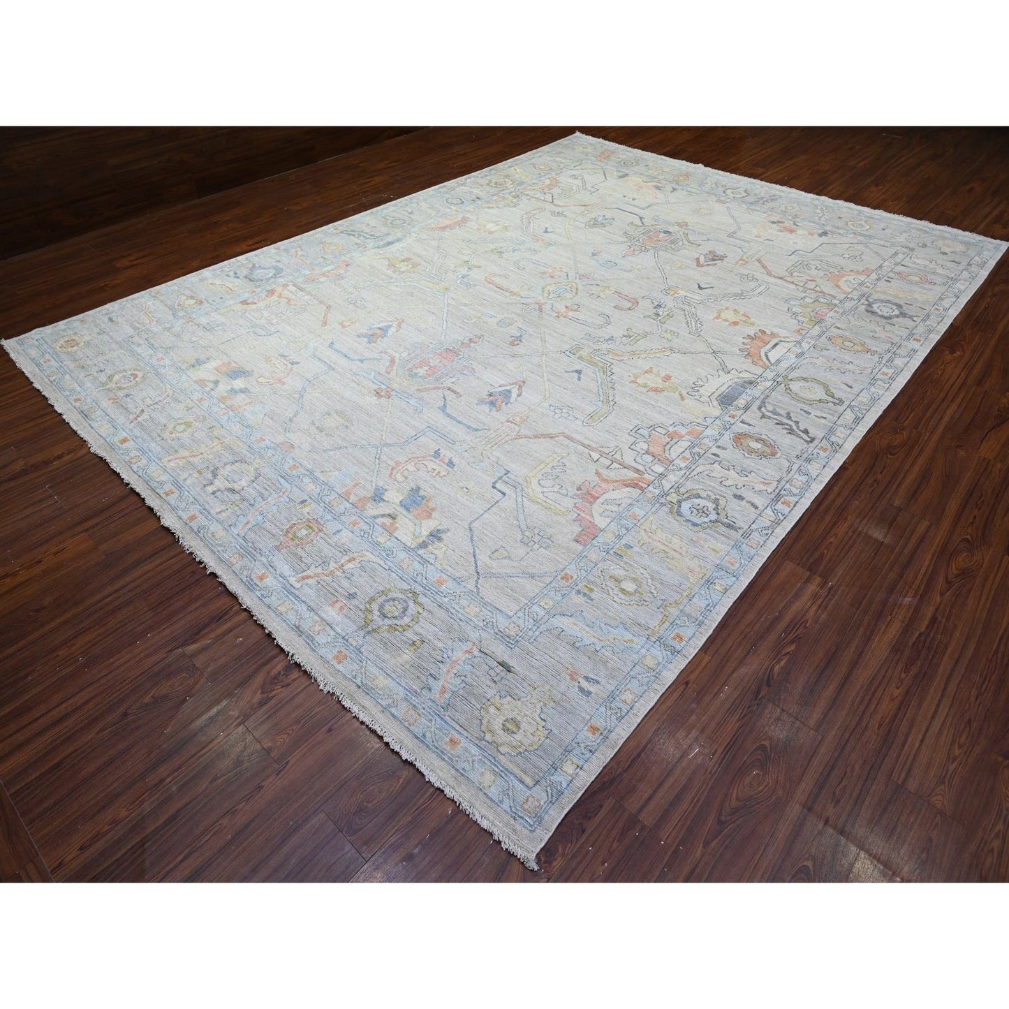 9'10"X13'6" Alabaster White Afghan Angora Oushak Wool Hand Knotted Rug