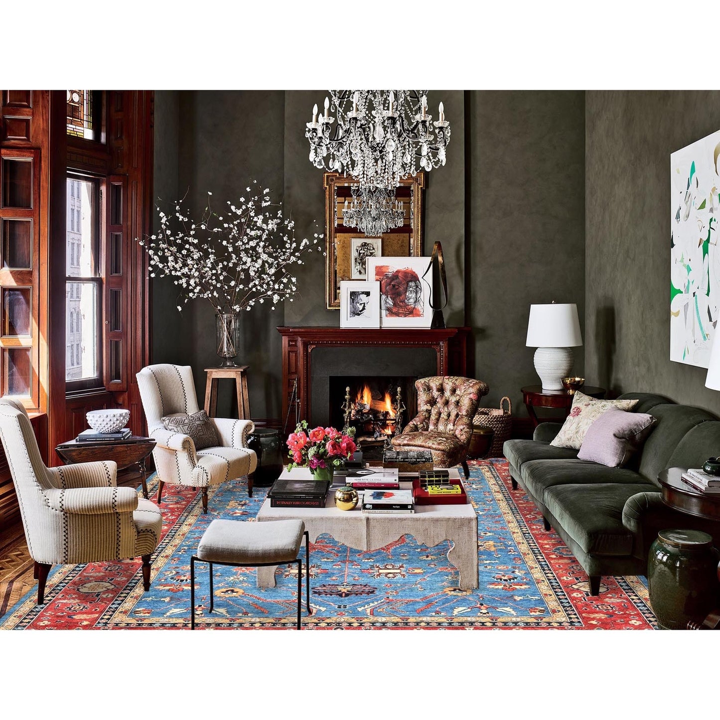 9'10"X13'6" Blue Afghan Peshawar Heris Wool Hand Knotted Oriental Rug