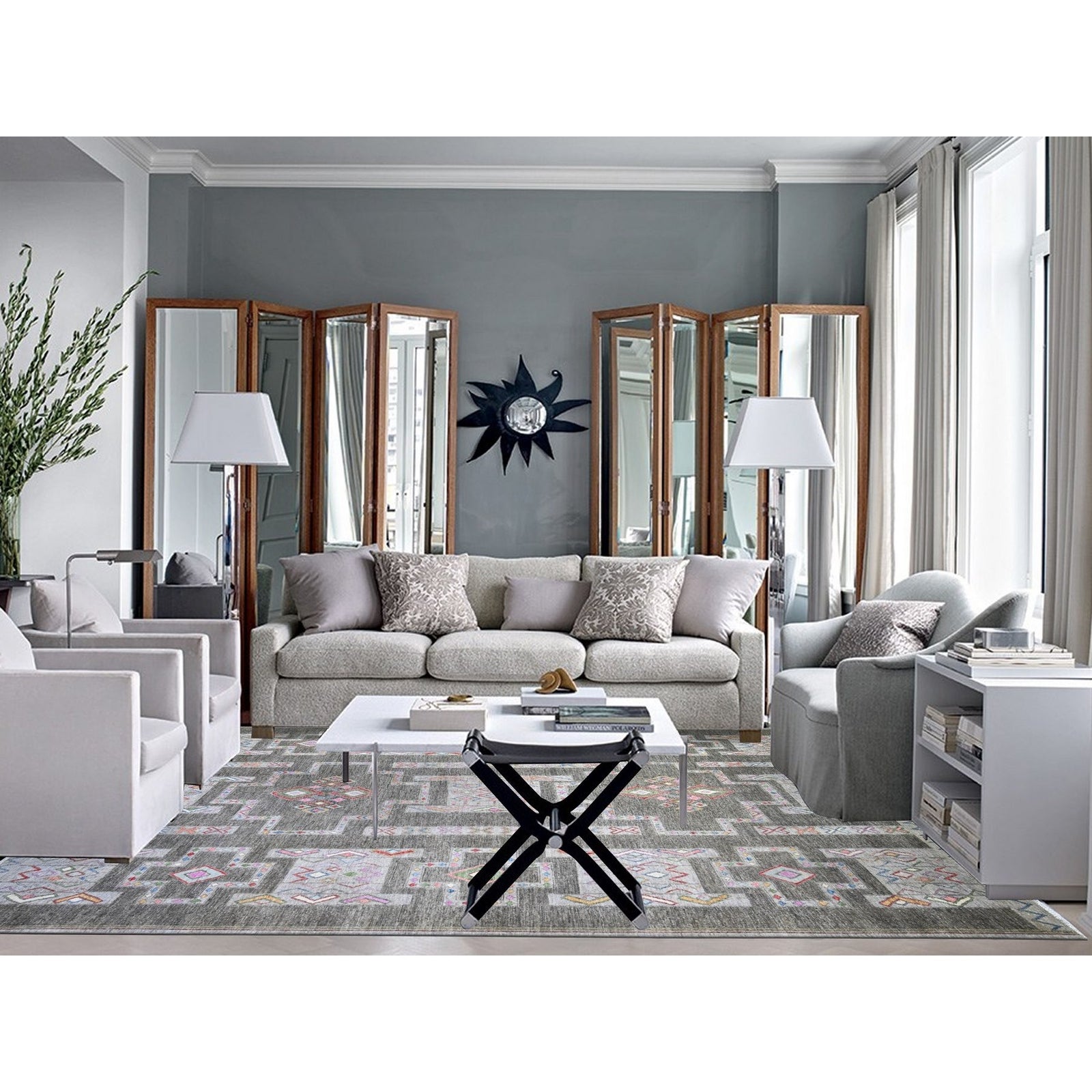 9'10"X13'8" Cloud Gray Fine Peshawar Wool Hand Knotted Oriental Rug