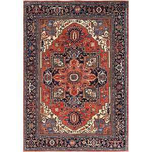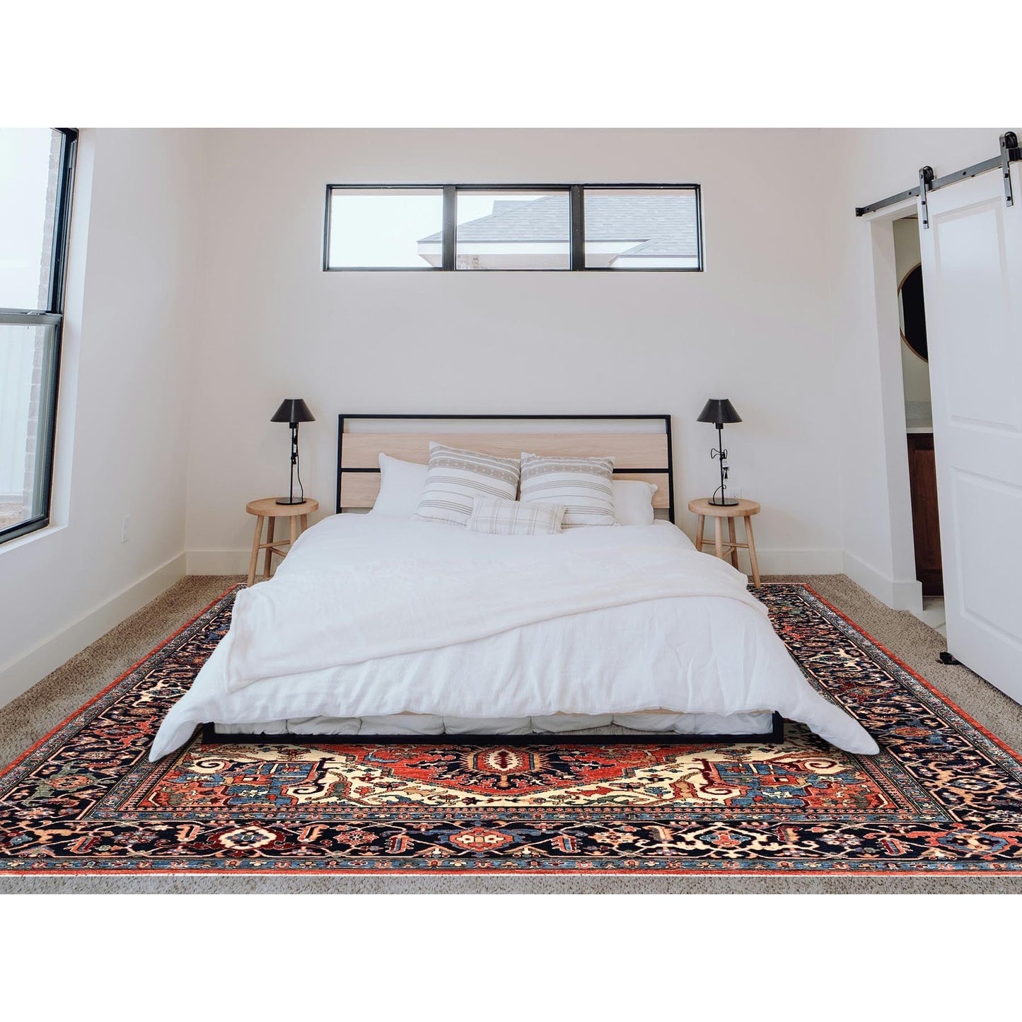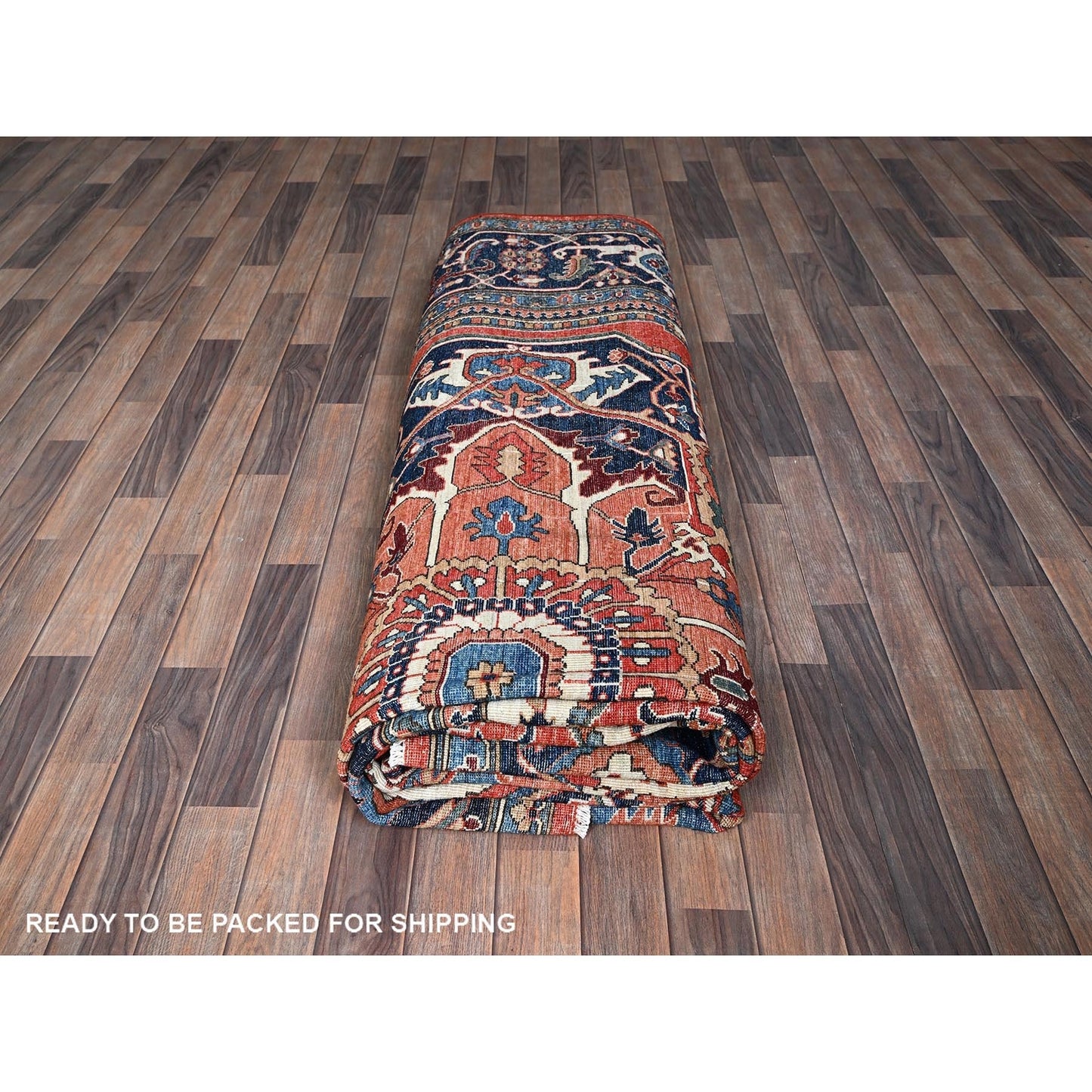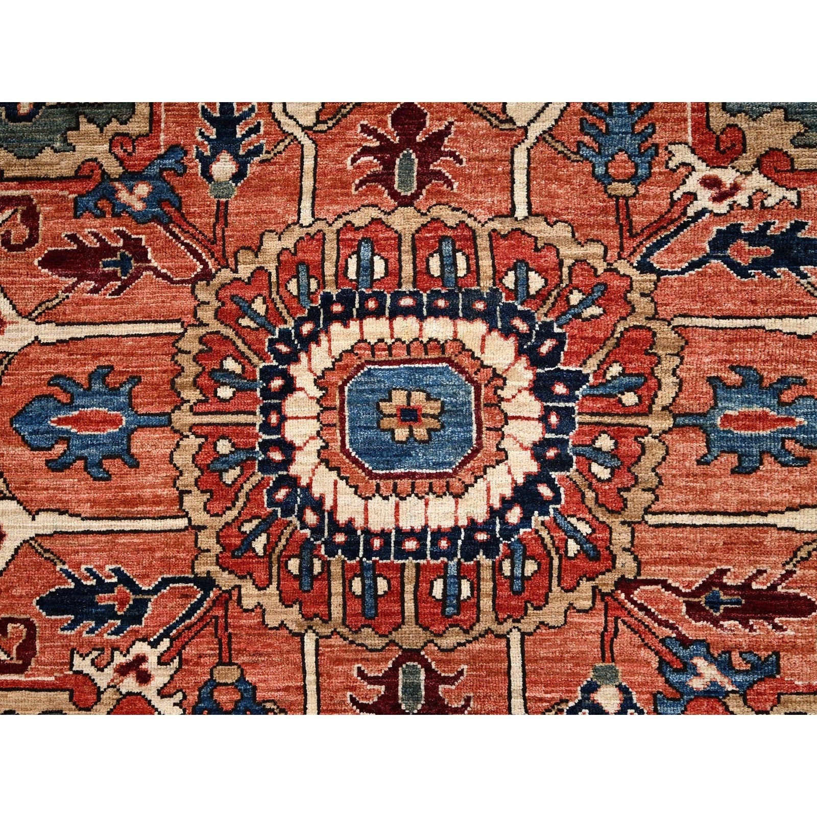 9'10"X14'3" Coral Red Seeripe Heris Design Hand Knotted Soft Wool Rug