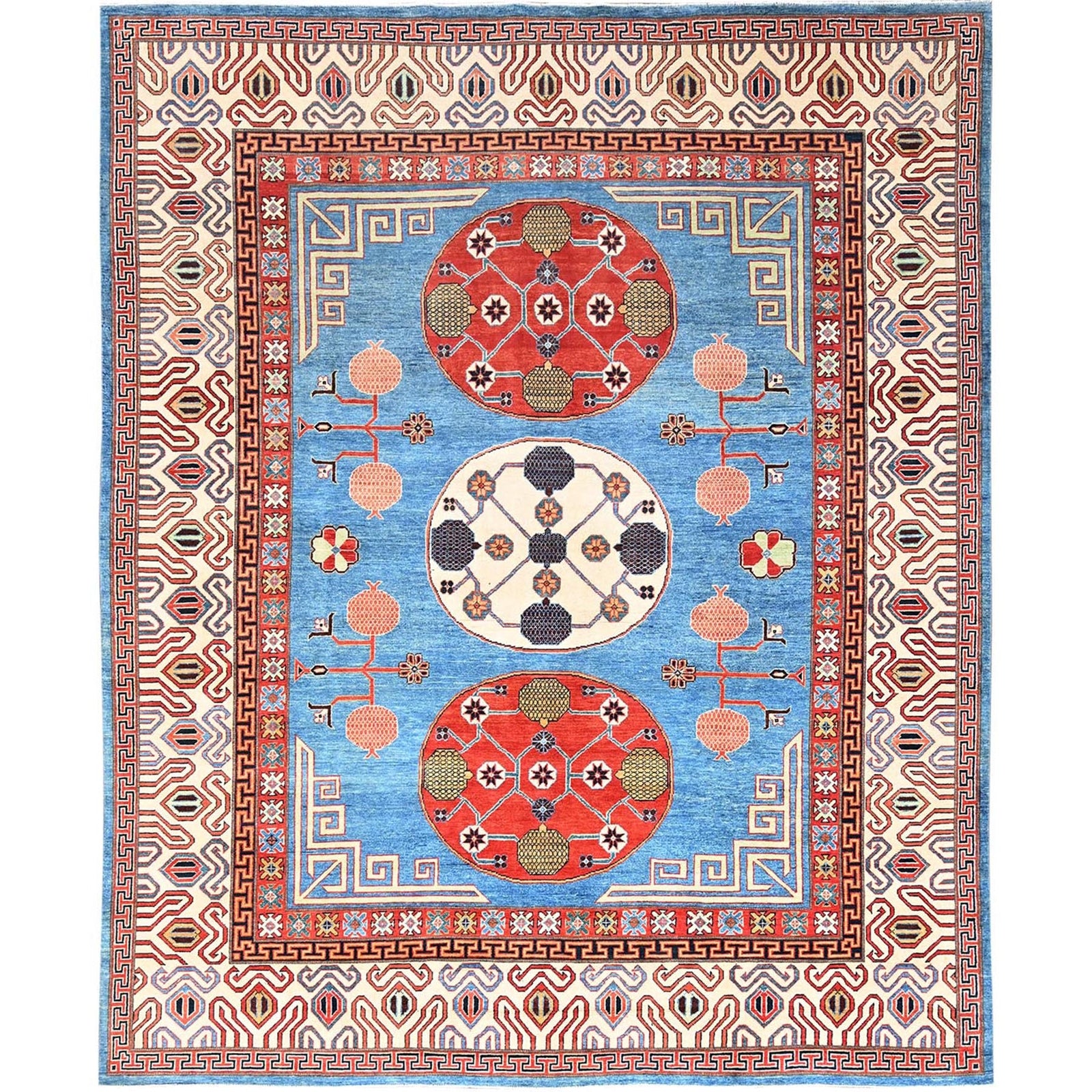9'1"X11'9" Blue Khotan Design Hand Knotted Soft Wool Oriental Rug