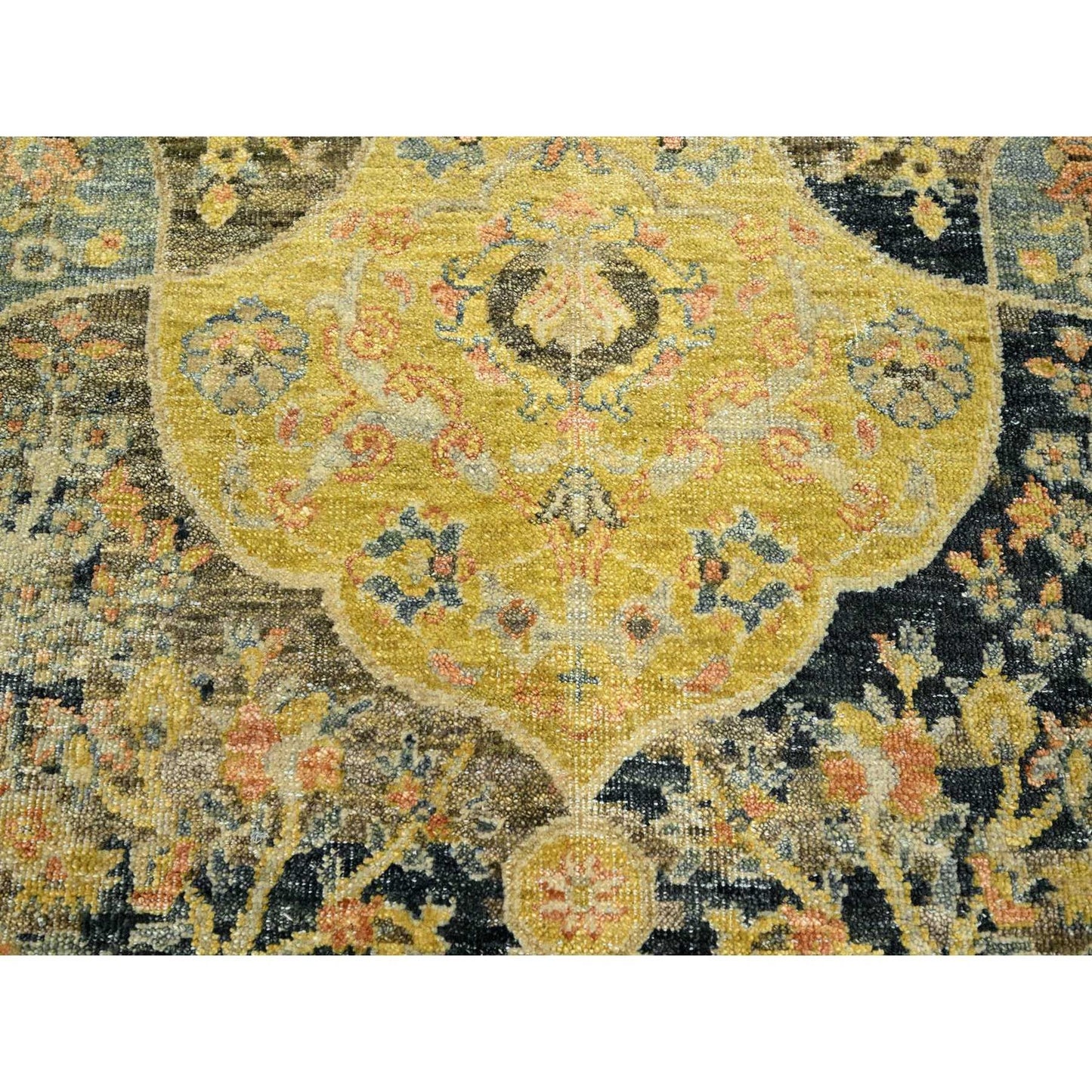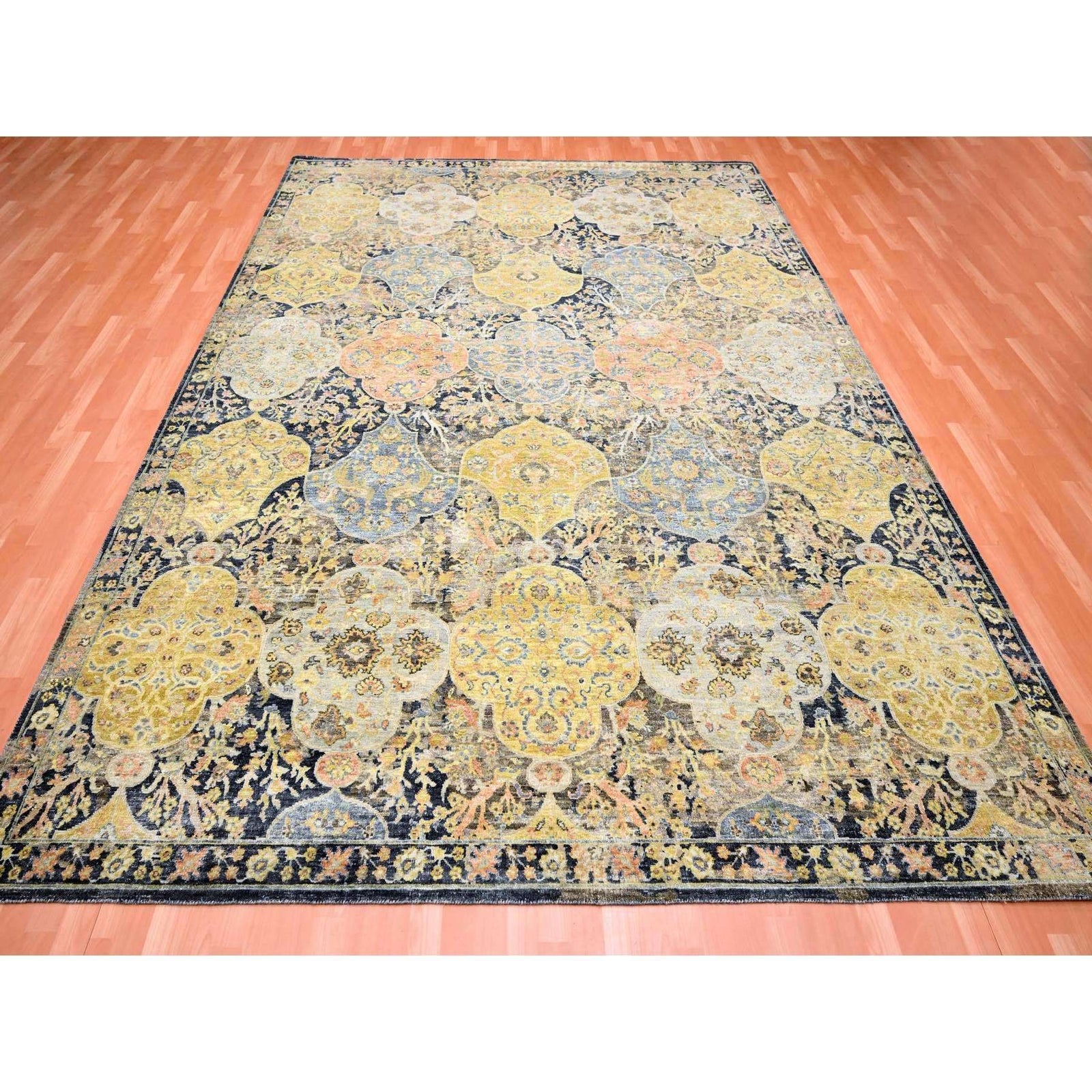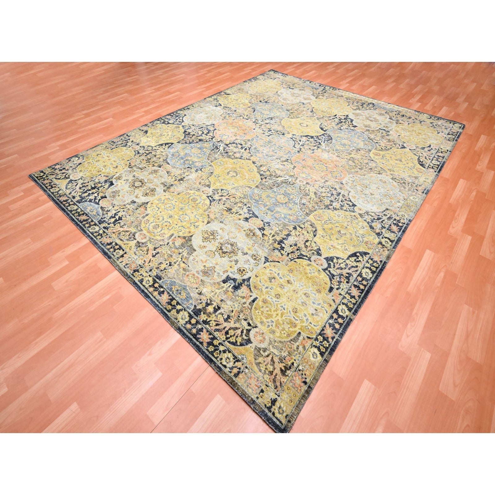 9'1"X11'9" Yellow Repetitive Emblem Design Hand Knotted Wool Oriental Rug