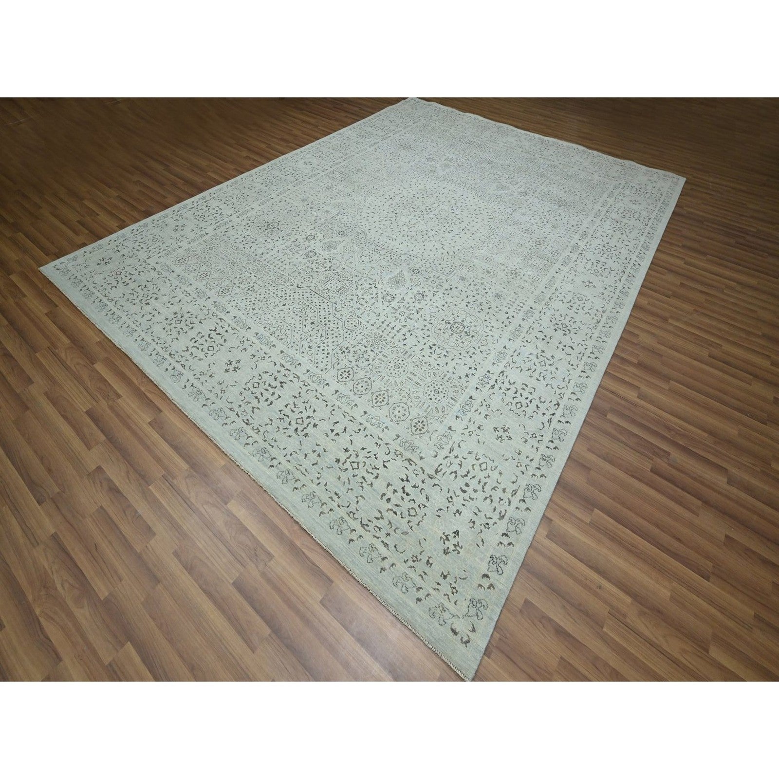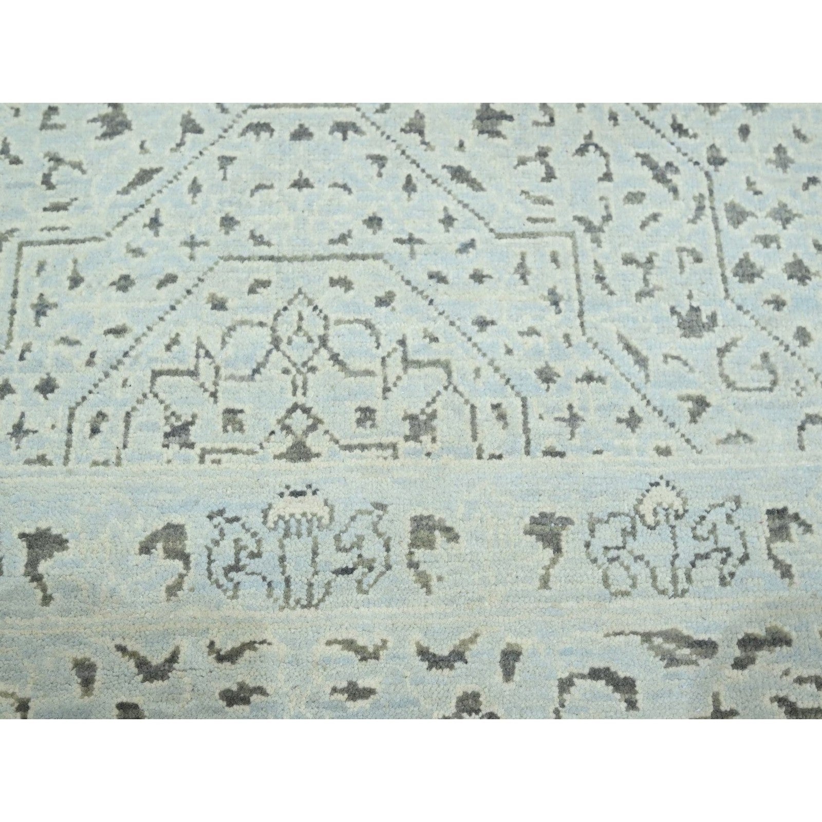 9'1"X12' Beau Blue Pre Historic Mamluk Design Hand Knotted Pure Wool Rug